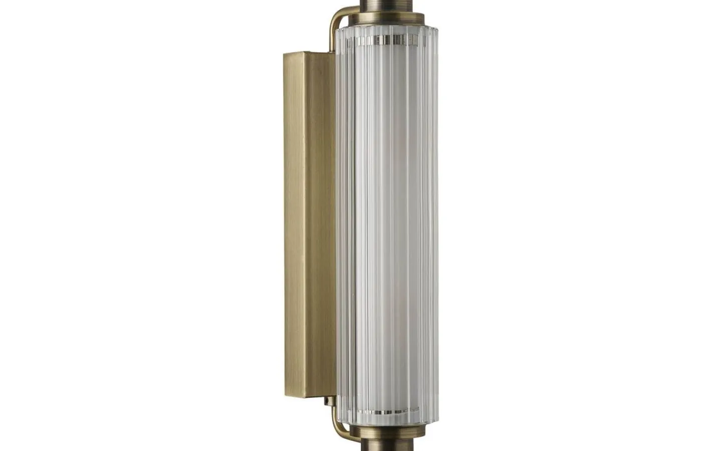 Nimal-serien har en rund och elegant Art Deco-design med en vacker räfflad glasskärm för badrum. Den opalvita diffusorn ger ett behagligt, diffust ljus. Den här vägglampan skapar en perfekt stämning ovanför eller bredvid badrumsspegeln.