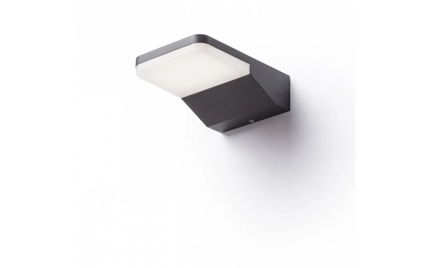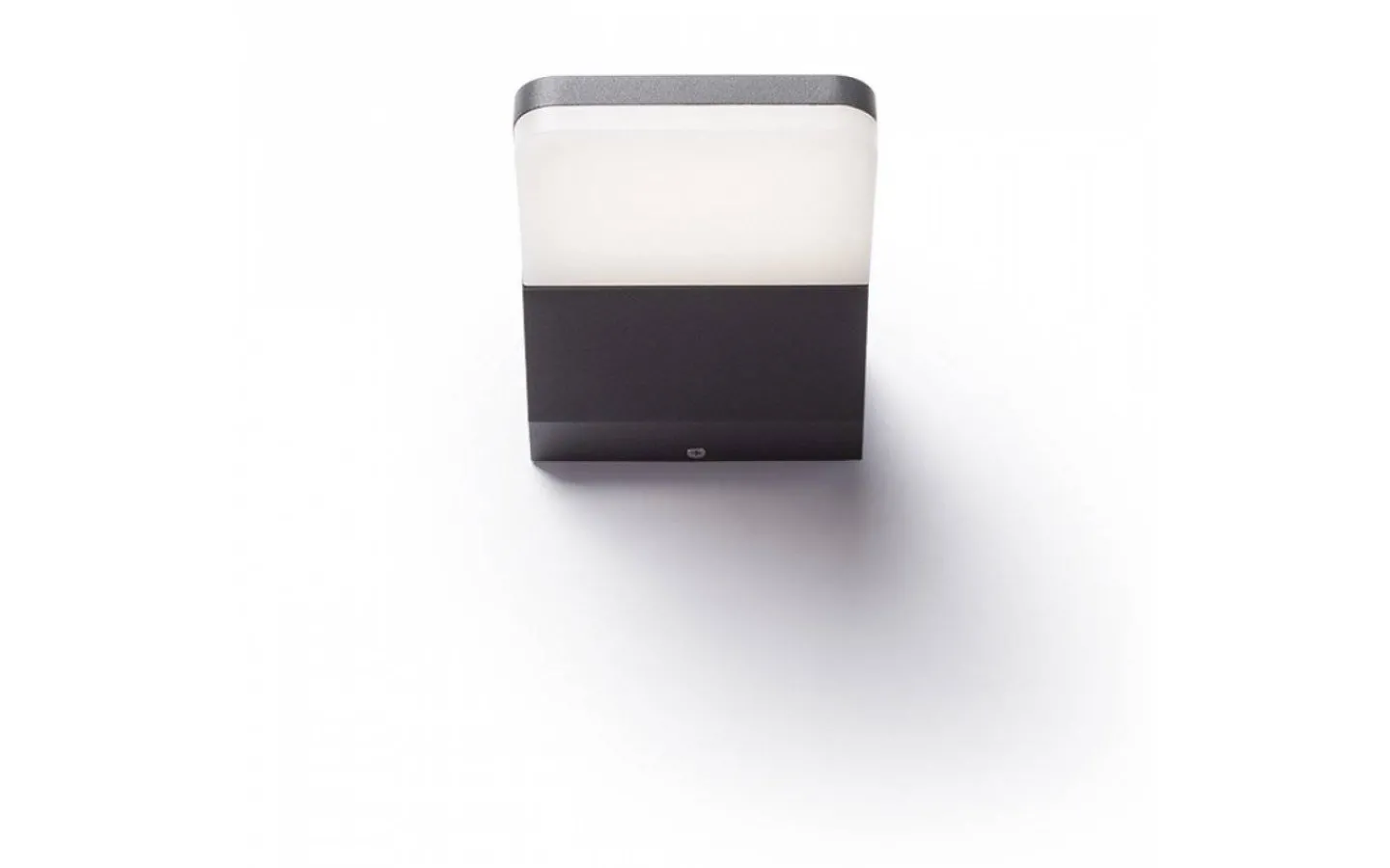 Vägglampa för utomhusbruk av pressgjuten aluminium med en opalfärgad täckskiva och inbyggd LED. Lyser endast nedåt.