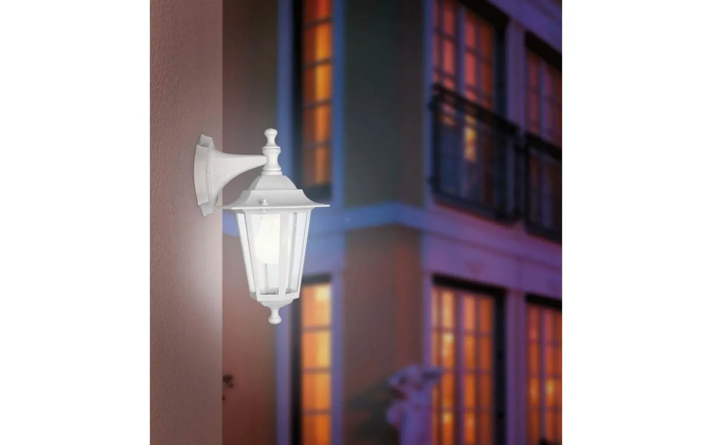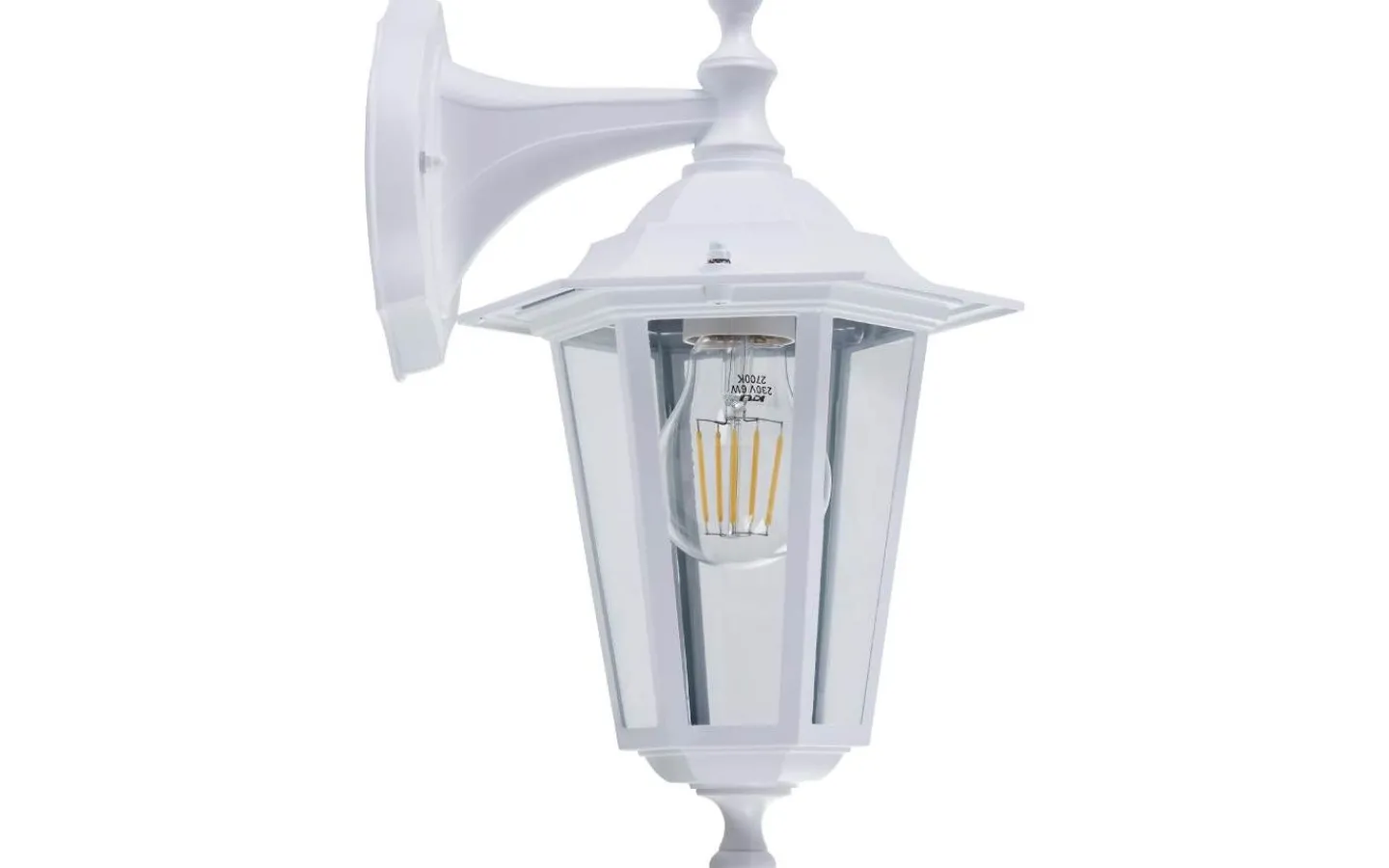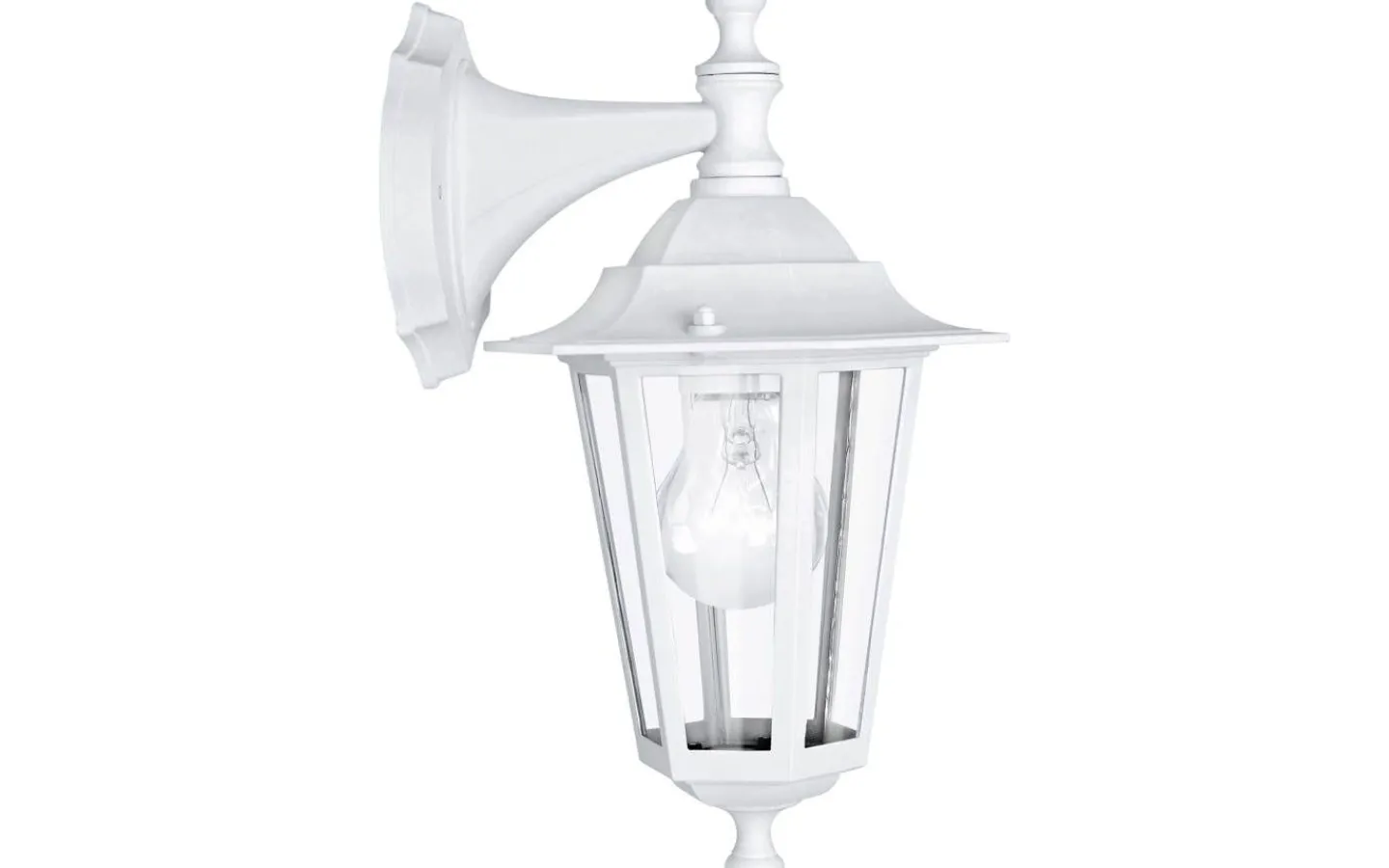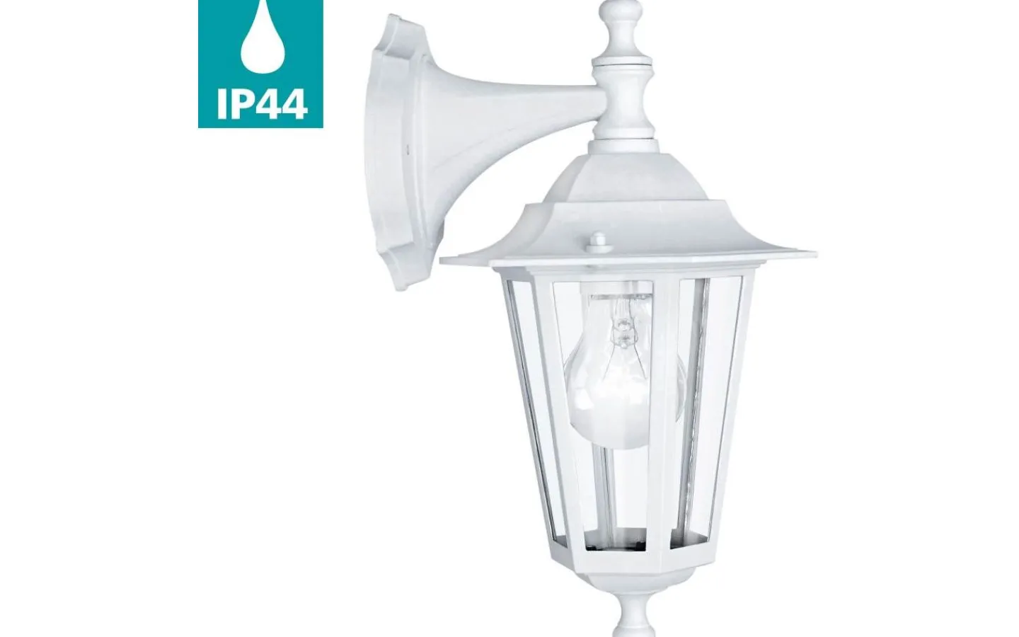 Den (hängande) LATERNA 5 ytterväggslampan i lyktstil har en kropp i vit gjuten aluminium med klara glasrutor. Produkten är lämplig för utomhusbruk på grund av dess IP44-skydd mot sprutvatten. Dess klassiska stil kommer vackert att komplettera ditt utomhusutrymme och ge belysning som passar miljöer som traditionella villor eller stadsvillor i jugendstil.