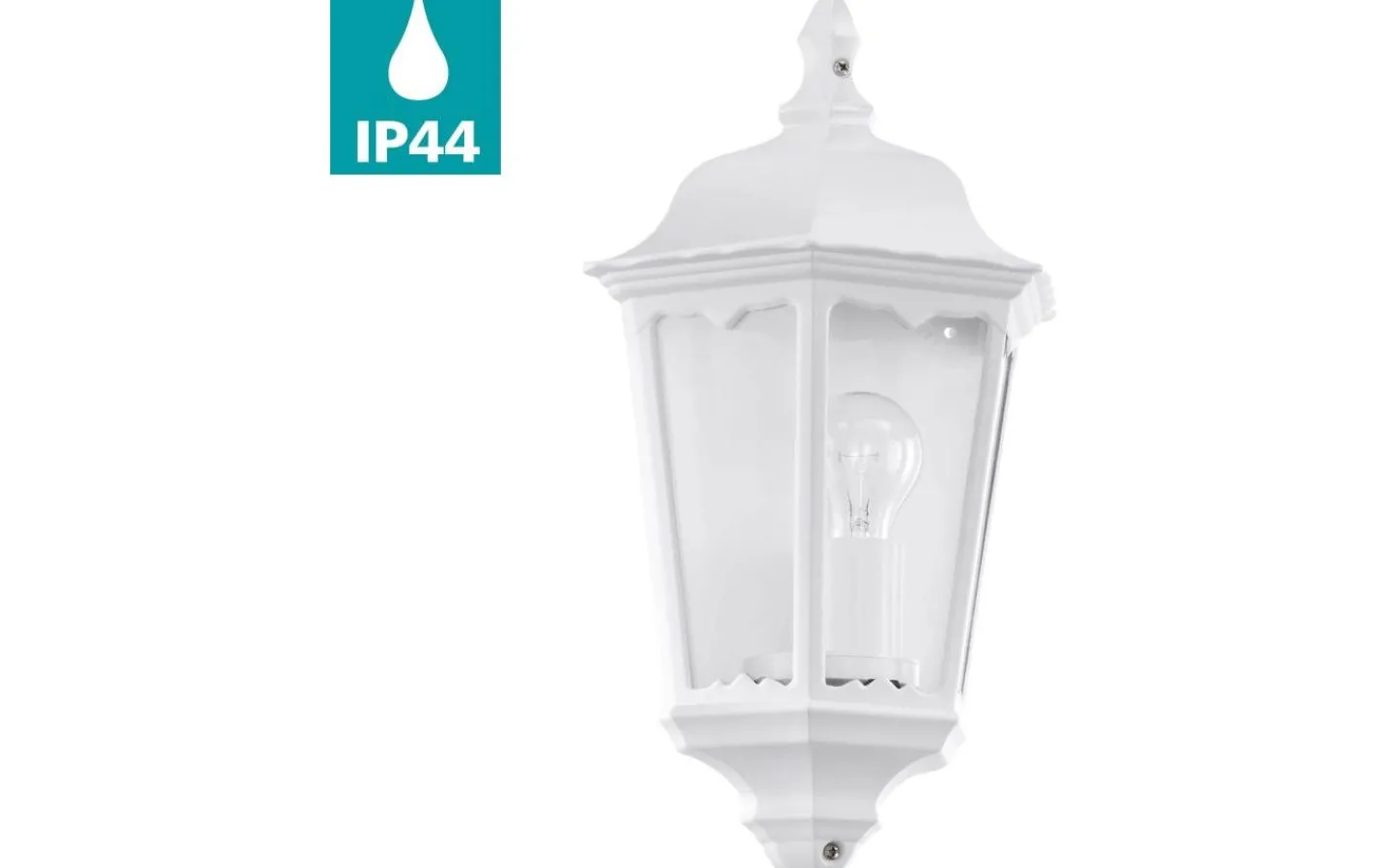 NAVEDO ytterväggslampa i lyktastil har en gjuten aluminiumkropp i vitt med klara glasrutor. Vägglampan är lämplig för utomhusbruk på grund av dess IP44-skydd mot stänkvatten. Produkten har en klassisk design som smälter in i utomhusutrymmen som stadsvillor i traditionell stil eller art nouveau – den perfekta vägglampan för terrasserna eller balkongerna.