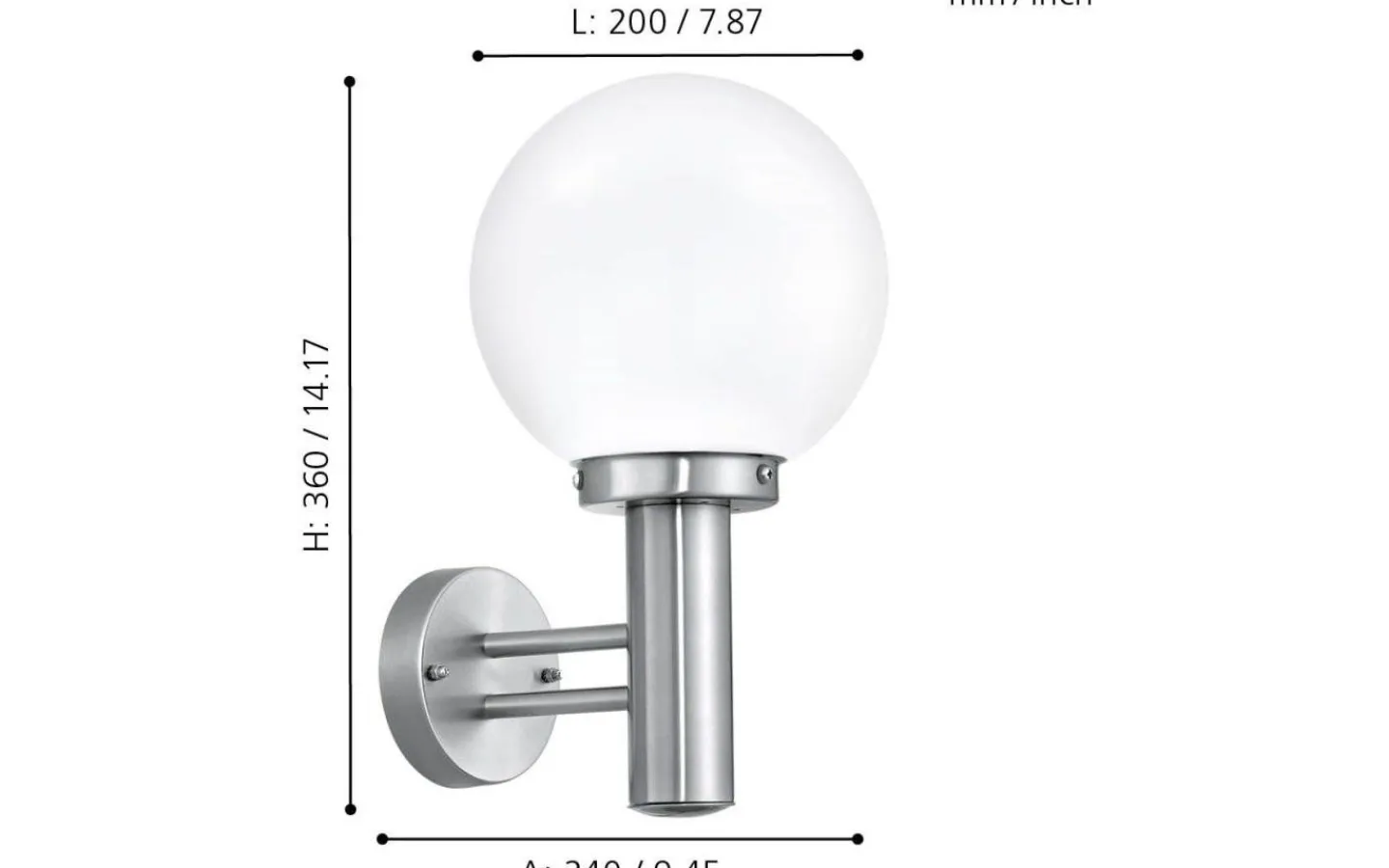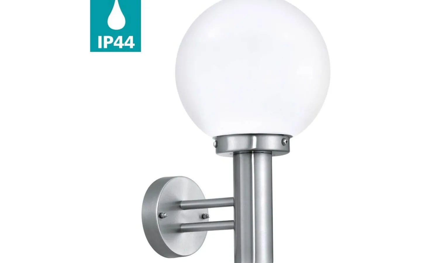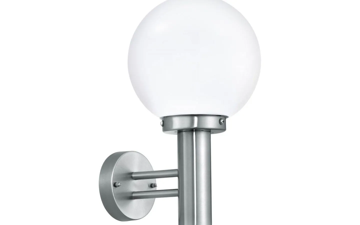 NISIA yttre vägglampa har en kropp i rostfritt stål tillsammans med ett sfäriskt glashuvud i vit satinfinish. Lampan är lämplig för utomhusbruk tack vare sitt IP44-skydd mot sprutvatten. Tack vare den klassiska designen smälter denna ytterväggslampa in i alla moderna utomhusutrymmen, oavsett om det är på en vägg, entrén eller terrassen.