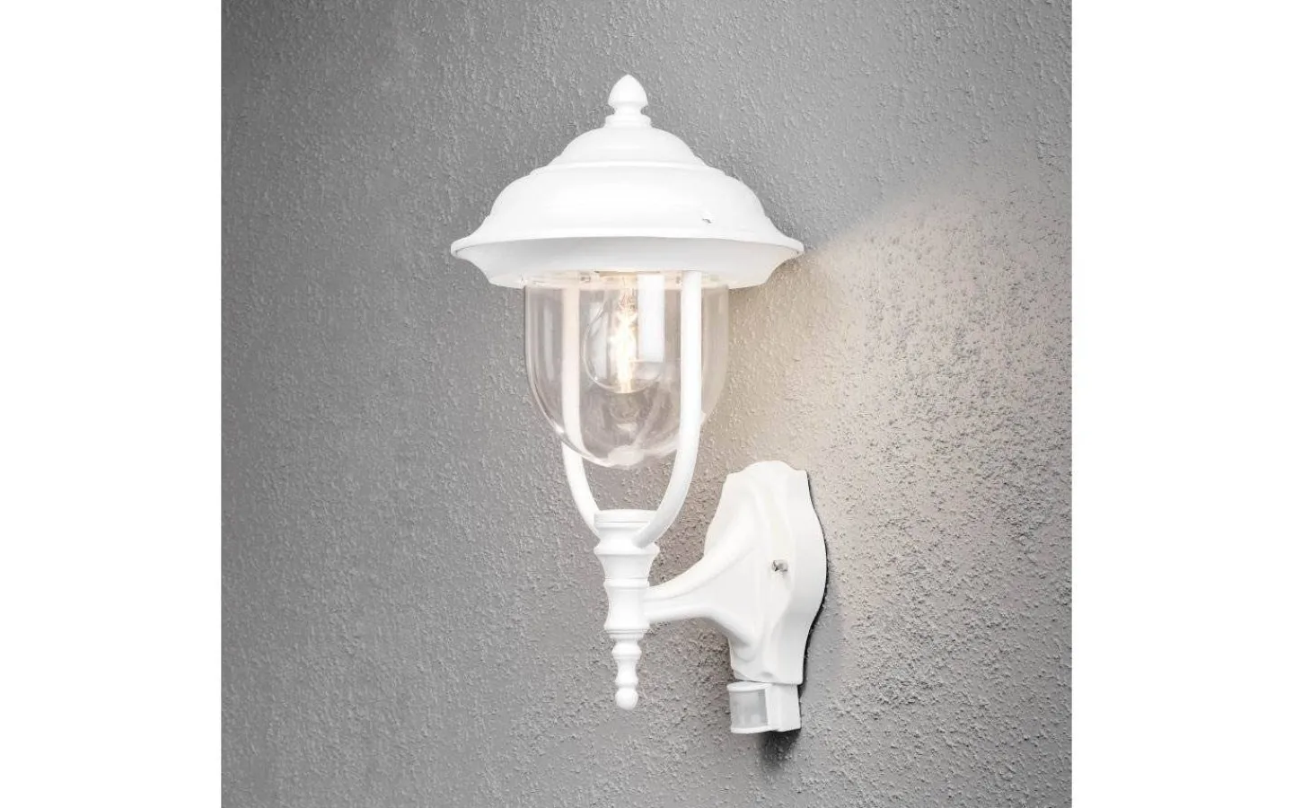 Denna eleganta och högkvalitativa armatur är gjord av aluminium och snyggt lackerad i vitt med klart glas. Vägglyktan har inbyggd rörelsesensor och avger en vacker ljusspridning både framåt, mot fasaden och åt sidorna. Installeras smidigt med 230V.