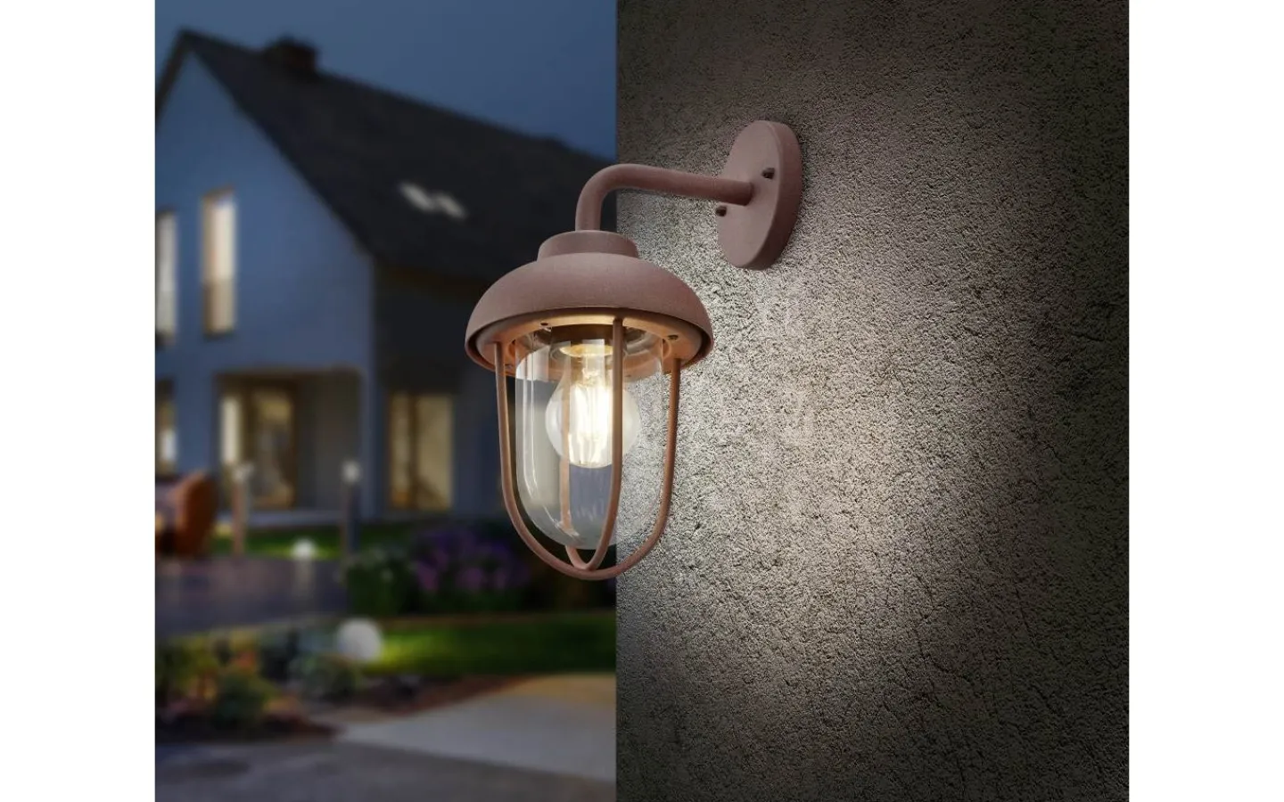 Dekorativ trädgårdsbelysning med DUERO vintage-utomhuslampan. Oavsett om den ska dröja sig kvar på terrassen eller i entrén, kommer vägglampan med sitt vintage-utseende att följa dig inte bara under den mörka årstiden, utan även under långa sommarkvällar. Tack vare sin IP44-skyddsklassning är vägglampan med en höjd på 32 cm och en bredd på 18 cm idealisk för att lysa upp ditt utomhusområde. Den rostfärgade designen i kombination med den transparenta glasskärmen kan kombineras på en mängd olika sätt och ger ett dekorativt designelement som förhöjer ditt hem. För modern och pålitlig belysning rekommenderas användning av en LED-lampa. Den erbjuder hög ljuskvalitet, är mångsidig och övertygar med jämn belysning. Dess långa livslängd och låga värmeutveckling gör den till det perfekta valet för en mängd olika användningsområden. Ljuskälla: exklusiv 1x E27 · max. 40W. Extra information: IP44, Lampa(or) ingår ej, Väggmontering