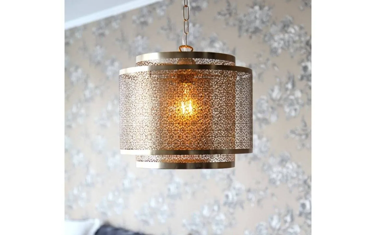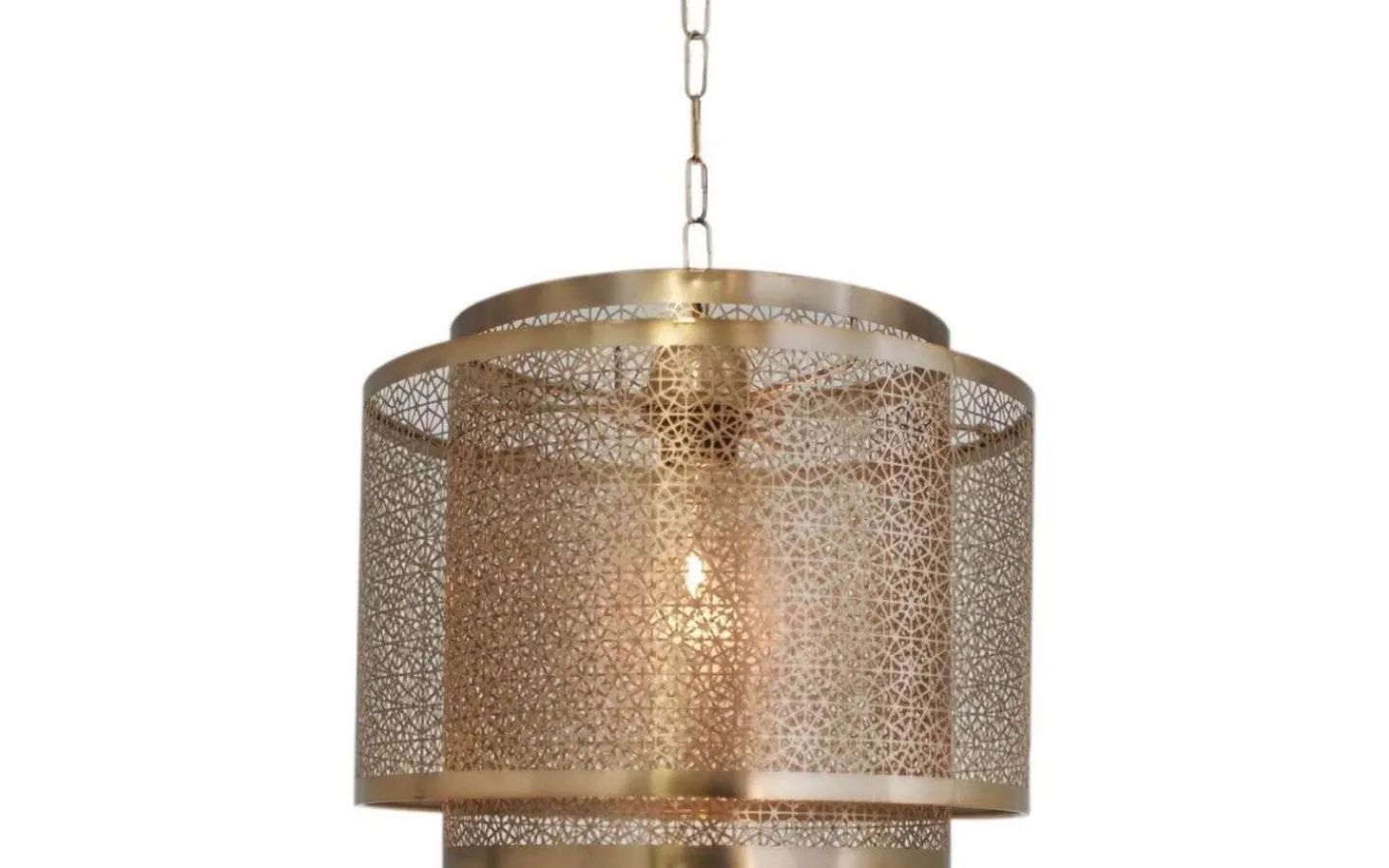 Bägge tuberna har utskurna mönster som för tankarna till blommor. När denna fina taklampa är tänd får man en varm och inbjudande känsla, lite likt en brasa som sprider värme.