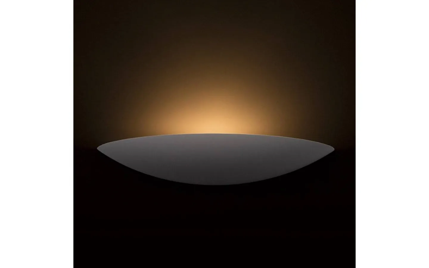 Vägglampa av gips för indirekt belysning. Går att måla med vanlig väggfärg.
