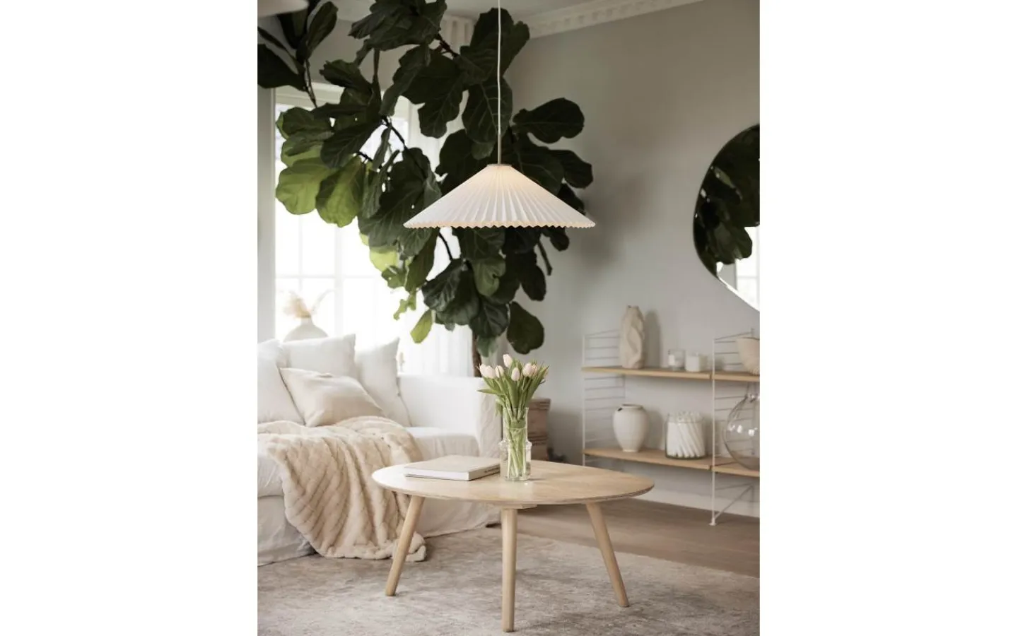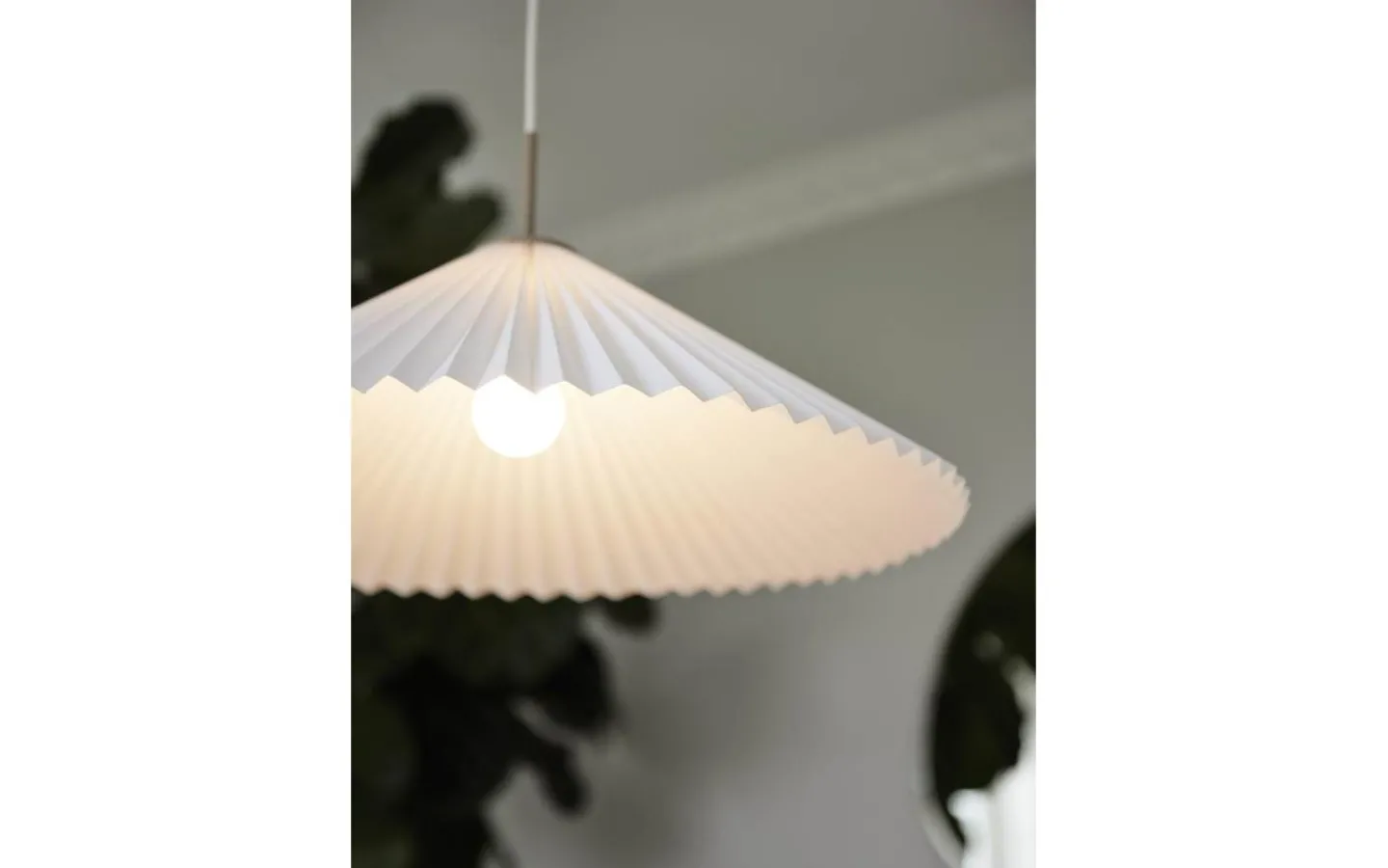 Levereras med 2m lång vit textilkabel och takkopp för krokupphäng. Takkontakt och ljuskälla köpes separat, se passande förslag under tillbehör.