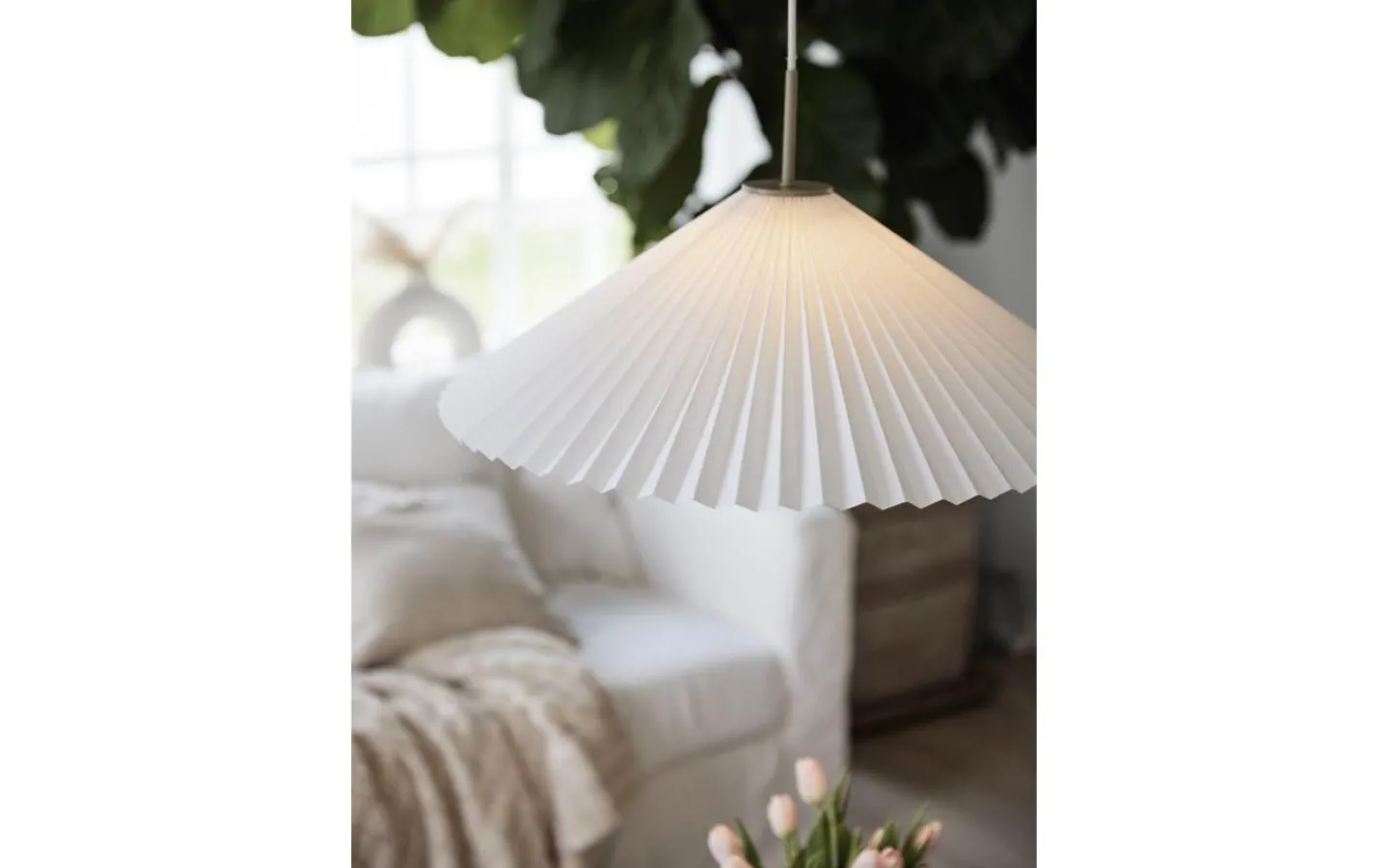 Dora taklampa från välkända PR Home är en enkel och stilfull taklampa i veckad vit papp. Detaljer så som takkopp och lamphållare är i beigelackerad metall.