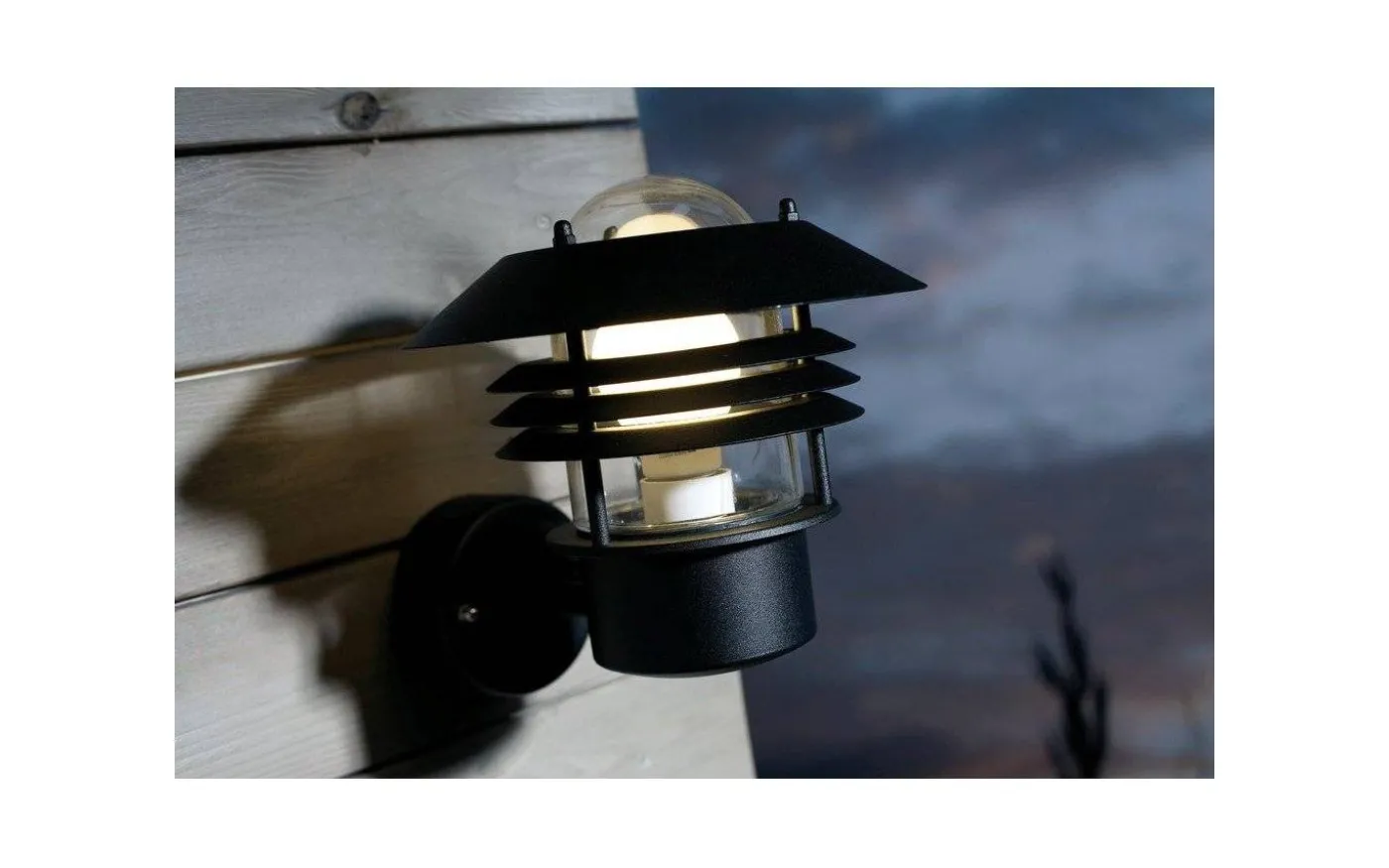 Denna modell av Vejers är gjord i galvaniserat stål med svart finish och har en IP54-klassning vilket innebär att den är väl anpassad för utomhusbruk och passar även bra vid kustnära områden. Du monterar denna vägglampa genom att skruva bakstycket direkt mot underlaget och sedan fästa lampans väggfäste på bakstycket. Anslutning sker med fast installation bakifrån.
