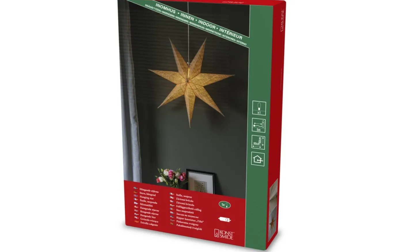 Klassisk adventsstjärna i naturfärgat papper med vacker textilstruktur. Levereras med praktiskt sladdställ och vit sladd med strömbrytare. Dekorativ detalj som skapar en varm, mysig och hemtrevlig julstämning.