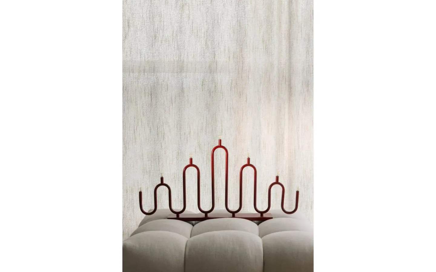 Noel från Globen Lighting är en adventsljusstake med nytt spännande formspråk. Den svängda designen, där metallrören böjs för hand i olika höjder, ger ljusstaken en unik form samtidigt som den behåller det traditionella utseendet av en adventsljusstake.