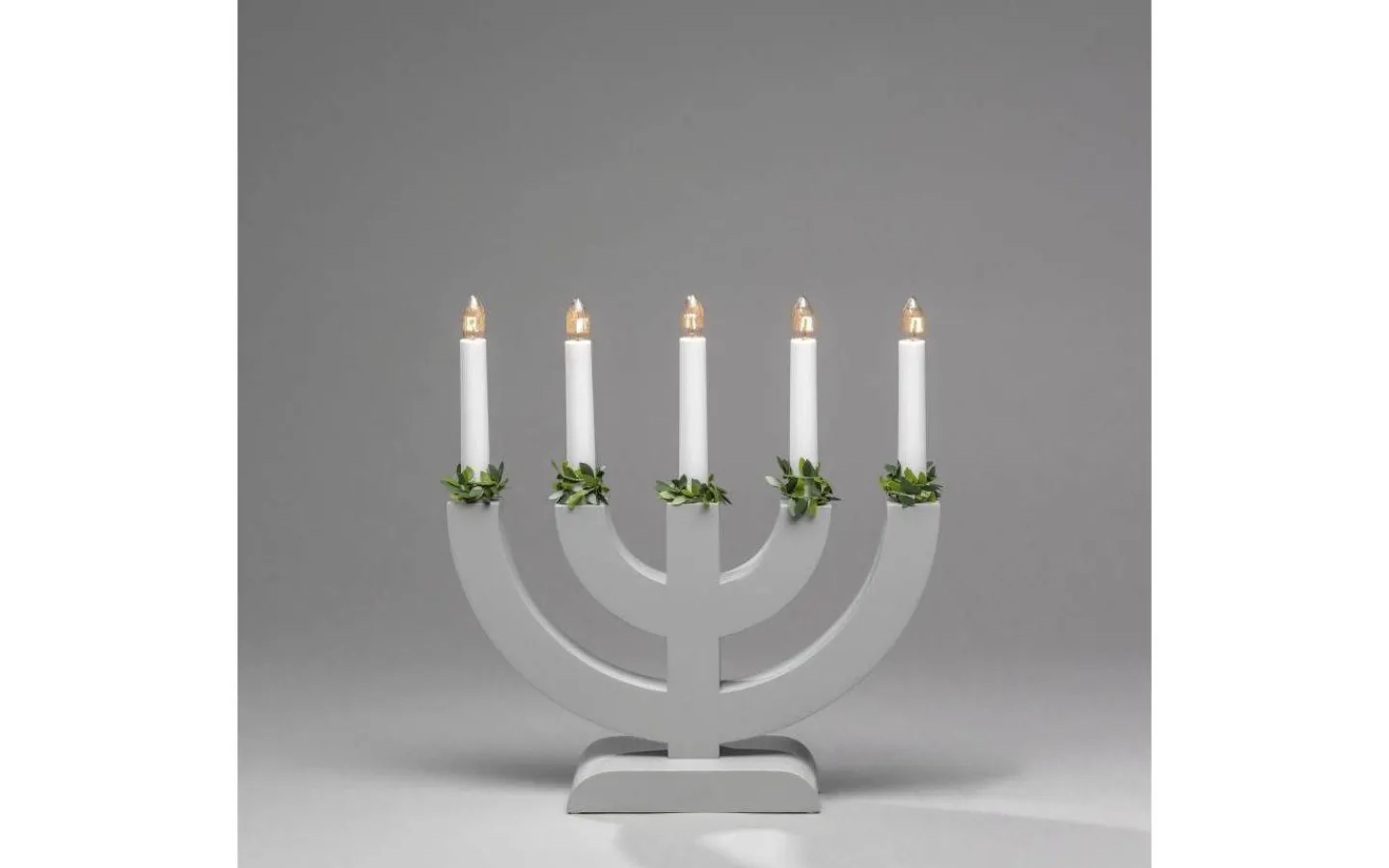 Silvia ljusstake från välkända Konstsmide är en elegant adventsljusstake med 5 armar. Ljusstaken är gjord i trä och har en fin grå finish med vita ljus och gröna dekorationskransar runt varje ljus.