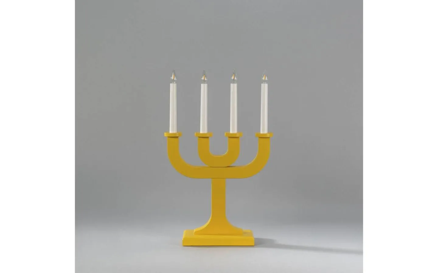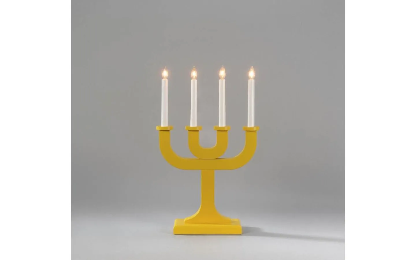 En gul adventsljusstake som vågar ta plats – stilren och modern med fyra ljus. Den lackade träytan skapar vacker kontrast mot det varma ljuset och ger ett elegant uttryck i både klassiska och minimalistiska hem.
