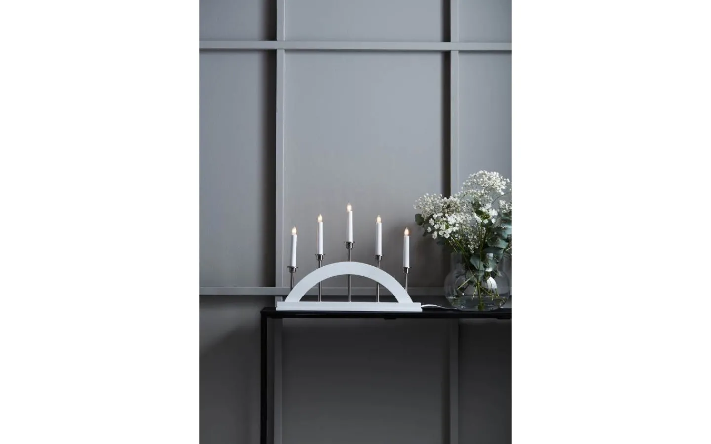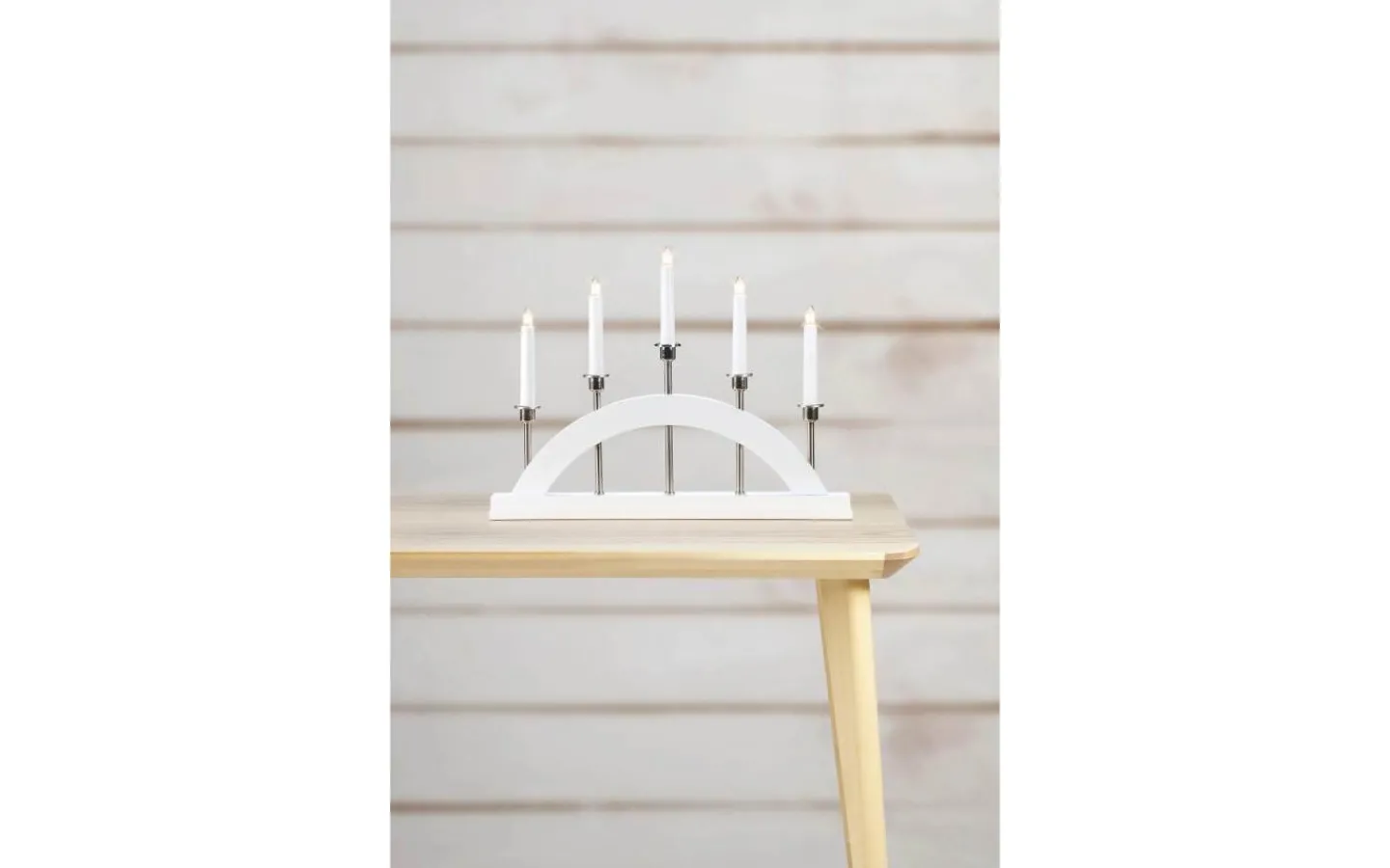 Bridge Adventsljusstake från välkända Markslöjd, är 5-armad träljusstake i bågform med antikfärgade detaljer. En perfekt adventsljusstake som är tidlös i sin design och har en bredd på 47cm och höjd på 36cm.