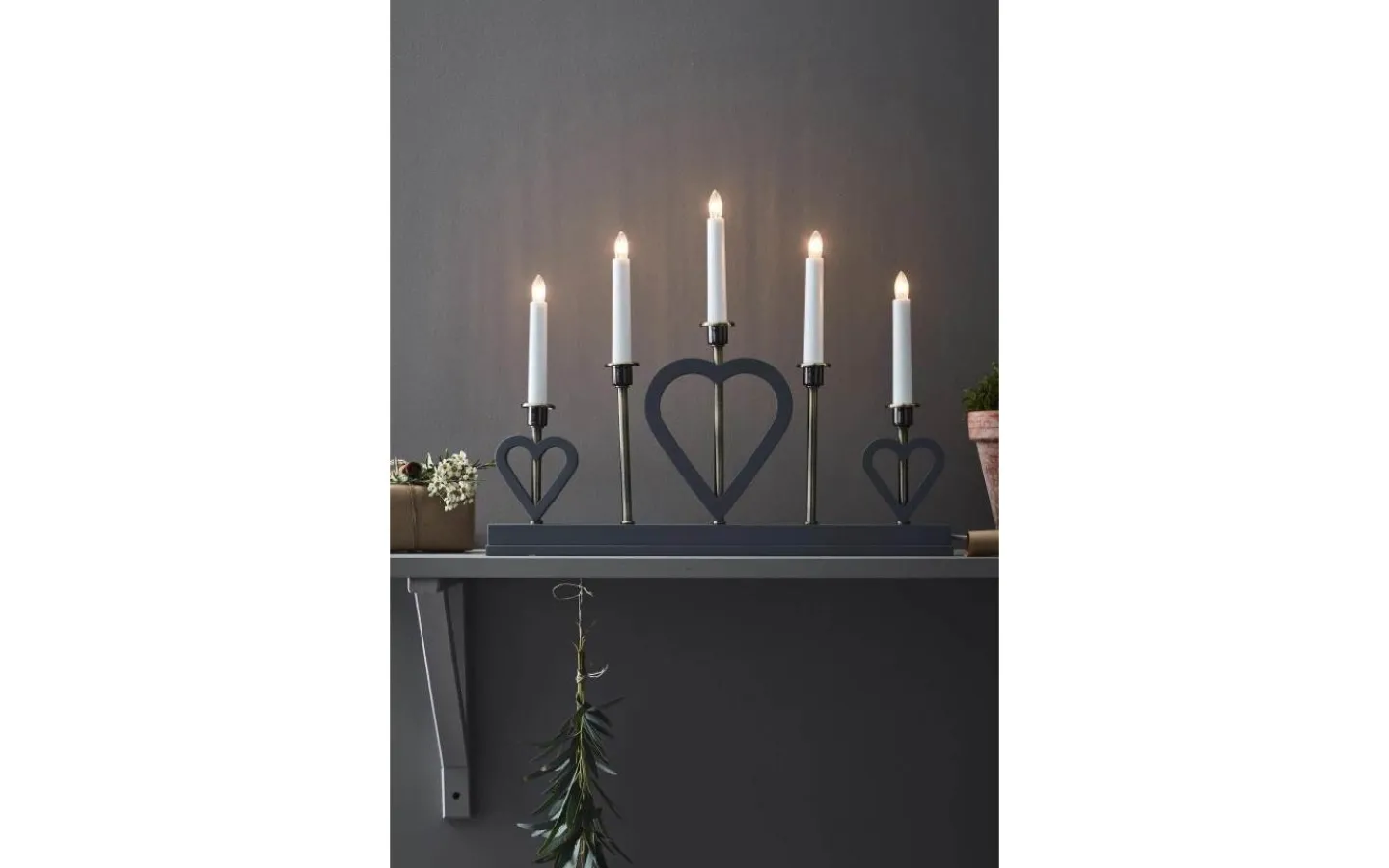 Vackra adventsljusstaken Melissa, från välkända Markslöjd, är en söt adventsljusstake med stomme i grått trä kombinerat med 5 ljushållare i mässing med en antik finish. Med sin höjd på 36 cm och smala djup på endast 5 cm passar julljusstaken Melissa precis lika bra i fönsterkarmen som på ett sidobord.