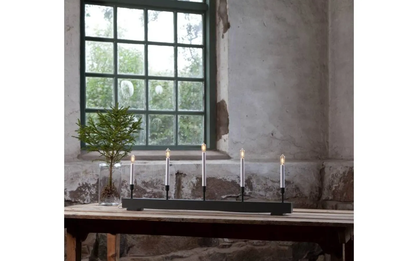 Storm, från kända Star Trading, är en större 5-armad träljusstake i stilren utformning. Denna eleganta ljusstake är hela 89cm lång och passar perfekt för dig med en större fönsterkarm eller som letar efter en extra lång ljusstake att pryda hemmet med. Med sin moderna design samt gråa färg kommer Storm aldrig gå ur tid utan varje år höja julstämningen. Denna ljusstake levereras komplett med fem stycken lampor som lyser i ett härligt varmvitt sken samt sladd med stickkontakt för vägguttag. Önskar du köpa reservlampor finner du passande modell under ”Köp Till”.