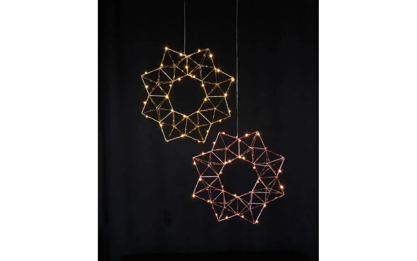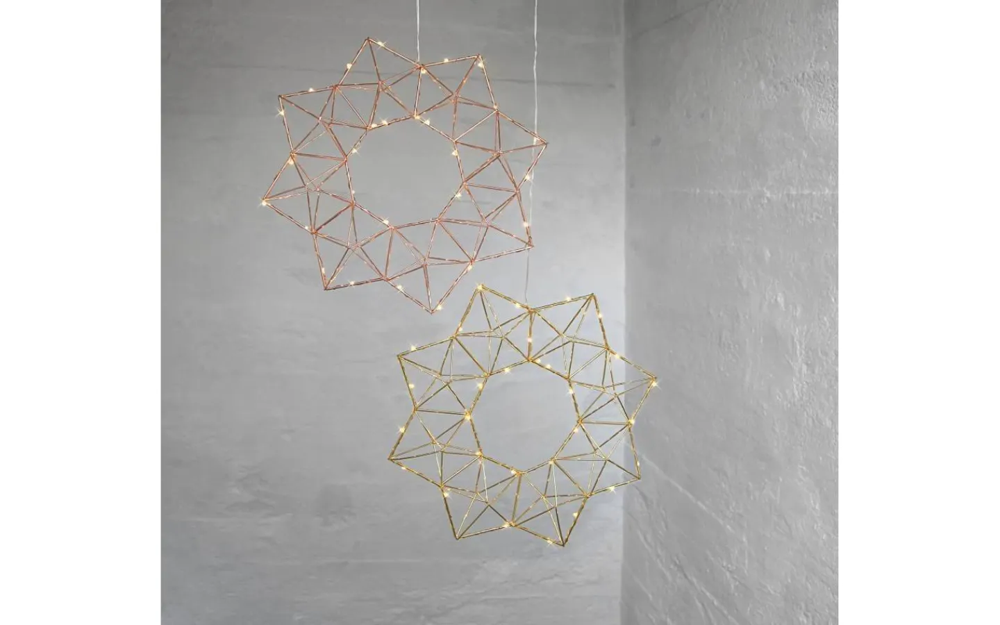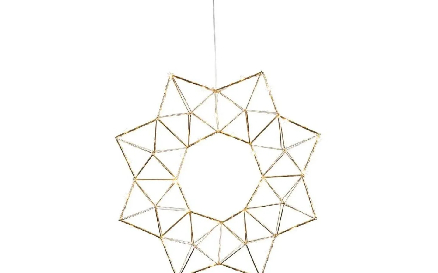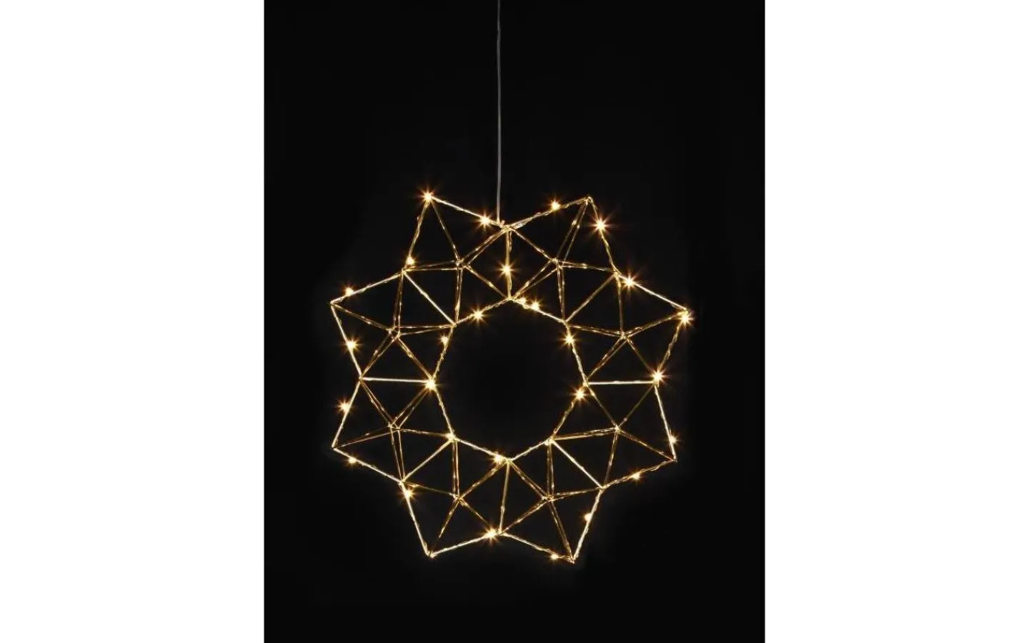 Fina adventsstjärnan Edge, från Star Trading, är en glänsande stjärna i mässingsfärgad metall med små fina, LED-lampor. Stjärnan har totalt 30 LED-lampor som inte utsöndrar värme, har låg energiförbrukning och extremt lång livslängd. Lamporna avger ett behagligt varmvitt ljussken och passar lika bra att hänga i fönstret som mot en vägg.