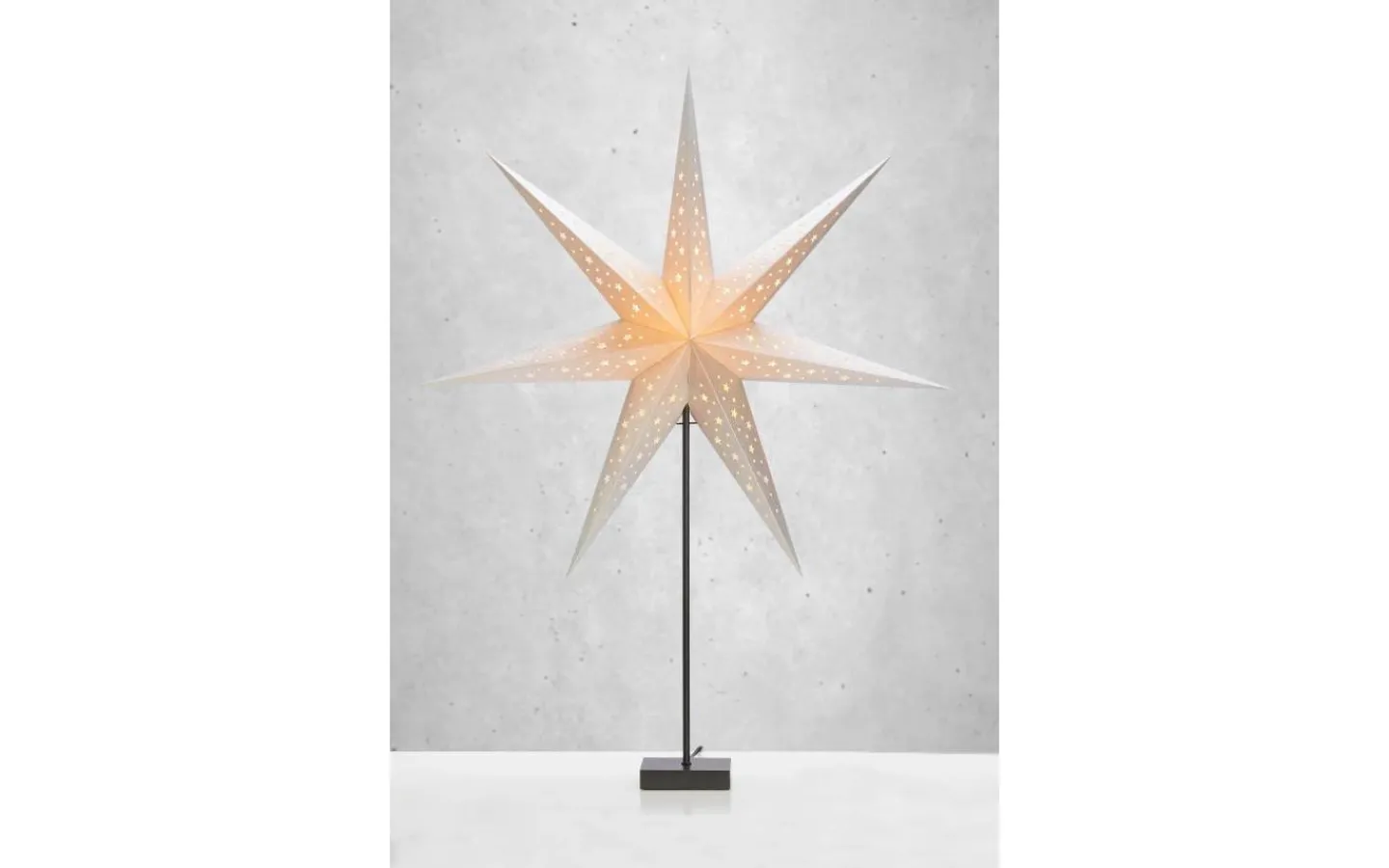 Solvalla julstjärna levereras med 2 meter lång sladd med strömbrytare och stickkontakt för vägguttag.