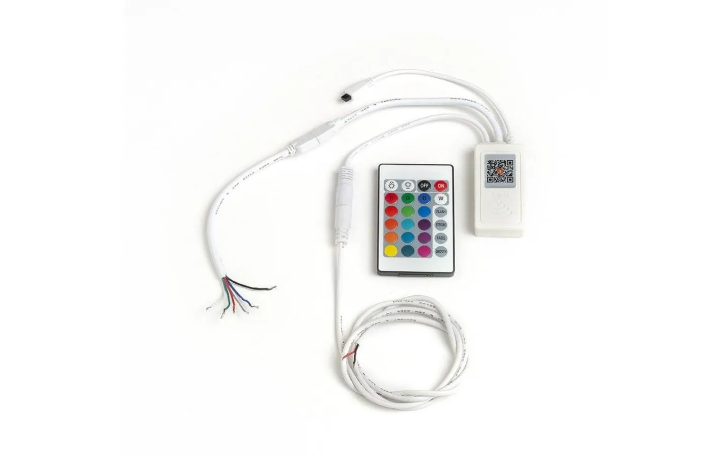Styrenhet via Wi-Fi eller fjärrkontroll som möjliggör styrning av LED-strip via Amazon Alexa Google Assistent så väl som Smart Life eller Tuya Smart (appar). I detta paket medföljer två fjärrkontroller, en för styrning av RBG LED-strip och en för styrning/reglering av ljusstyrka på enkelfärgade LED-strip (3000K samt 4000K)