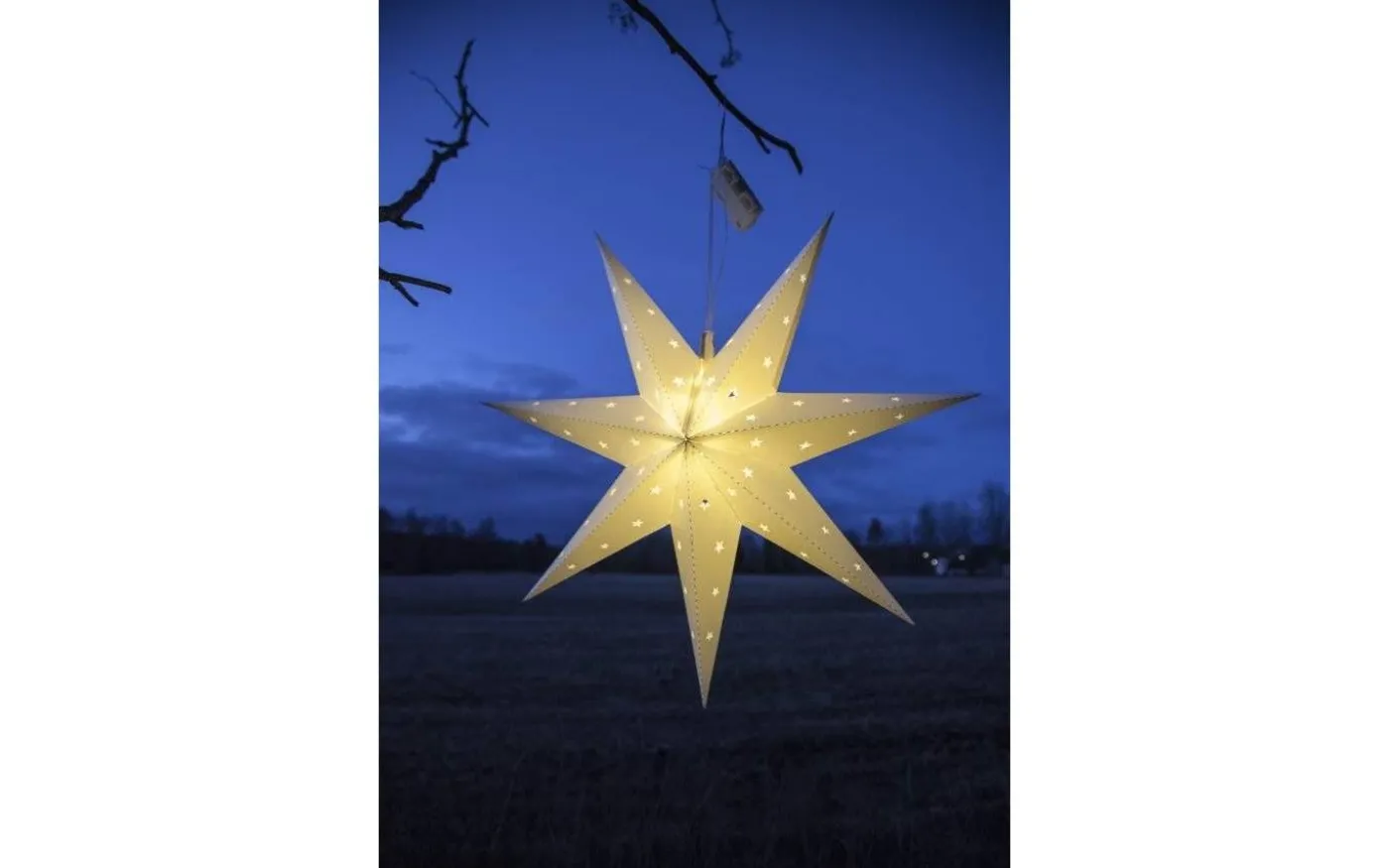 Vackra Alice, från Star Trading, är en batteridriven julstjärna med små stjärnmönster. Stjärnan är tillverkad i plast och är godkänd för utomhusbruk. Batteristjärnan har totalt 12 stycken små LED-lampor som lyser i ett mysigt, varmvitt ljussken.