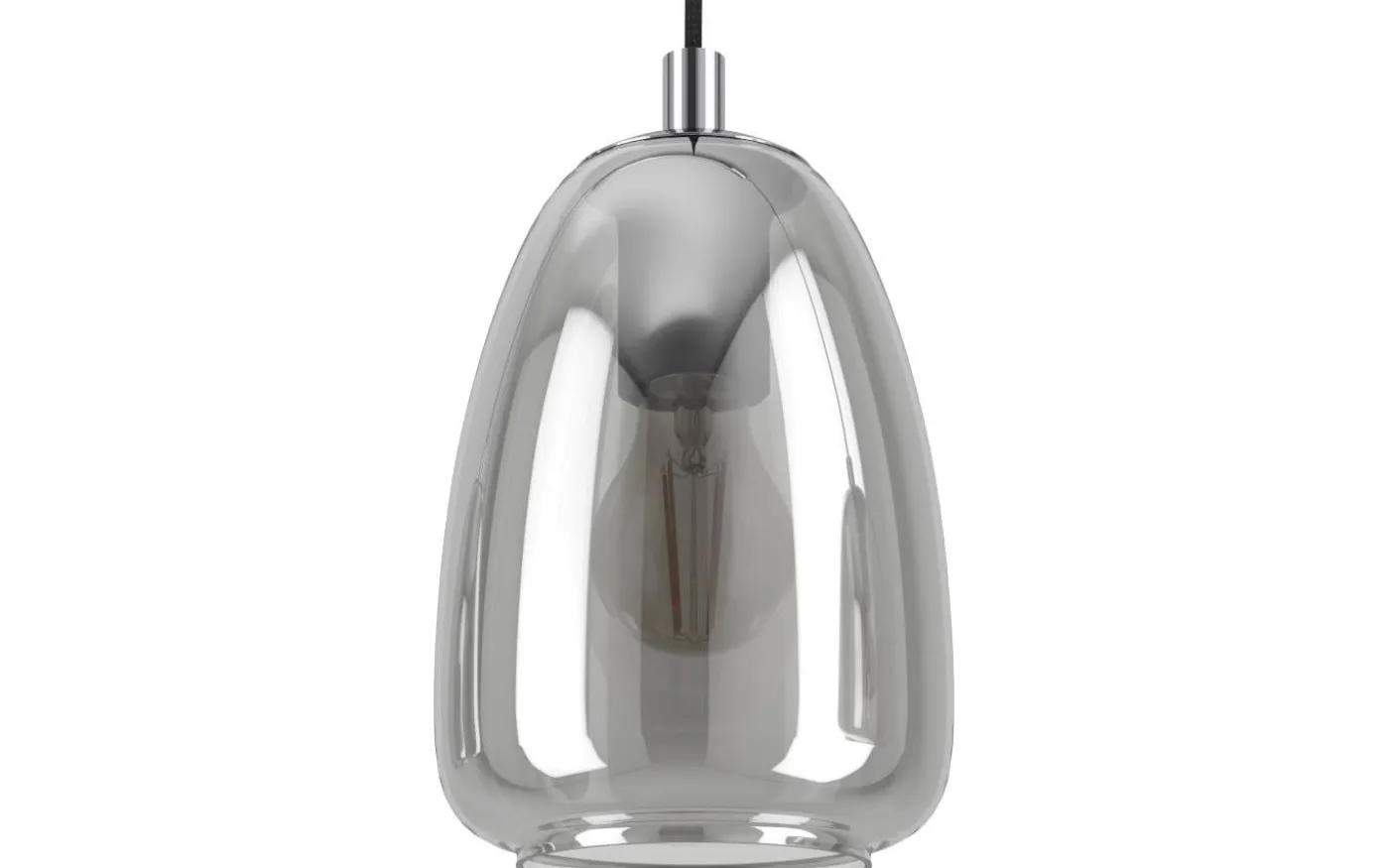 ALOBRASE taklampa har fyra rundade, rökta svarta glasskärmar som är upphängda i svarta kablar från en långsträckt kromfärgad metalltak. Dess design smälter in i nästan alla moderna interiörer. Den trendiga taklampan ger stilfull belysning för ditt utrymme, oavsett om det är i vardagsrummet eller ovanför bordet i matsalen.