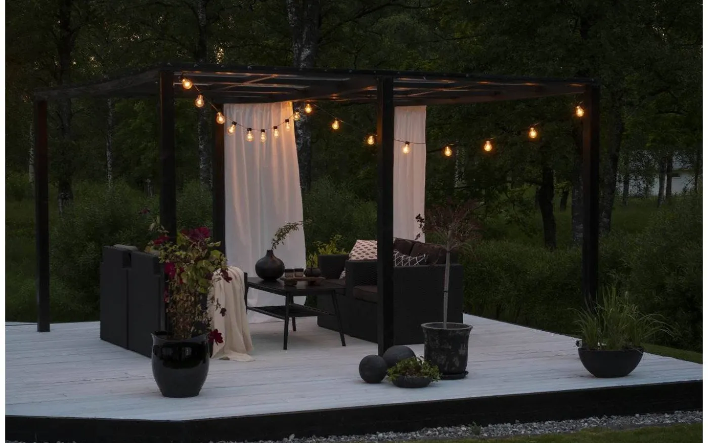 Fin ljusslinga med svart kabel och klara ljuskällor i LED, från välkända Konstsmide. Denna ljusslinga blir en mysig dekorationsbelysning i trädgården, på balkongen eller i pergolan.