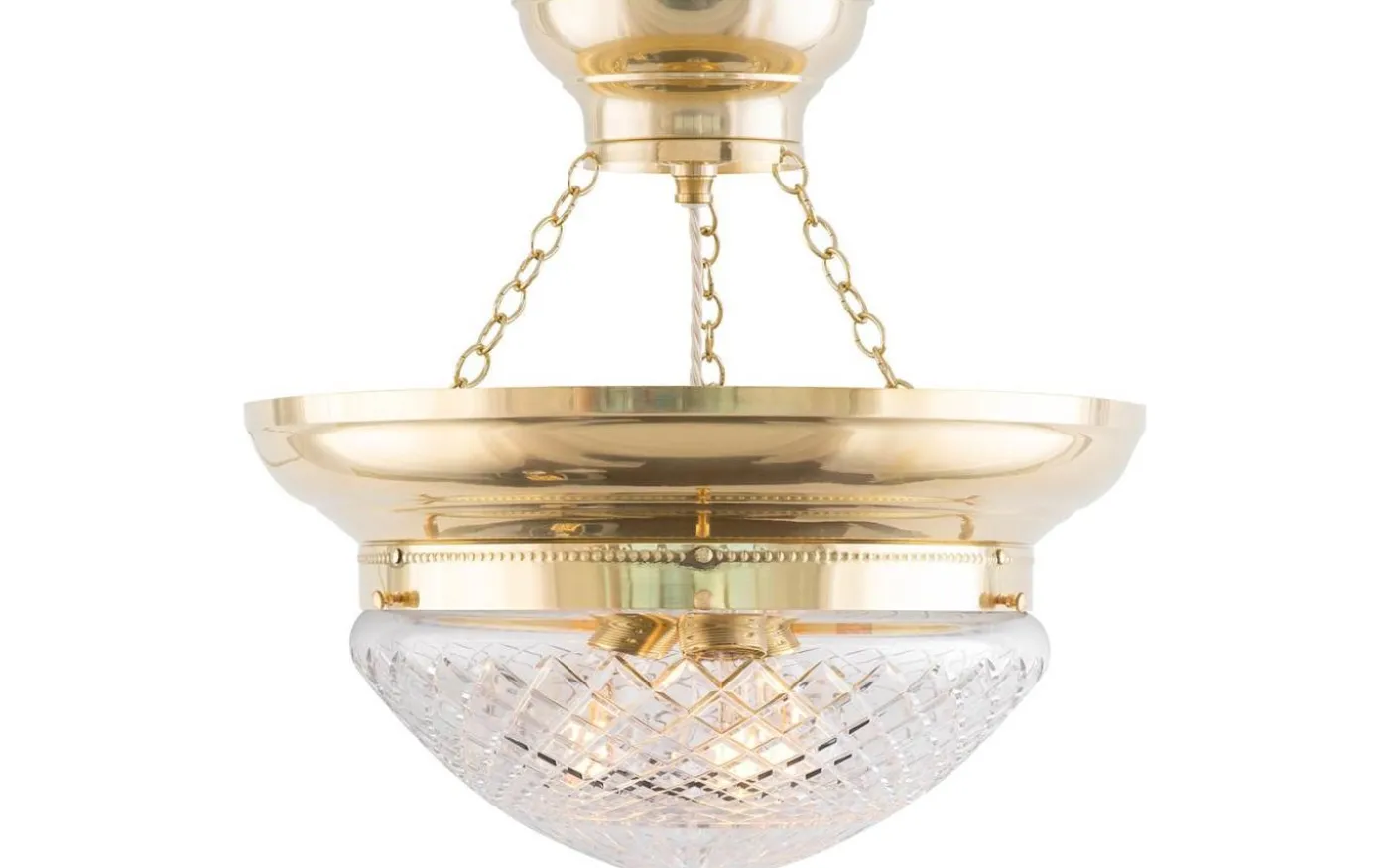 En klassisk kristallkupa i matterat klarglas med en slipad stjärna i toppen som ger ett mycket elegant och behagligt sken tillsammans med en ljuskälla av koltrådstyp. Detta droppformade glas förekom i vårt sortiment redan på 1890-talet.