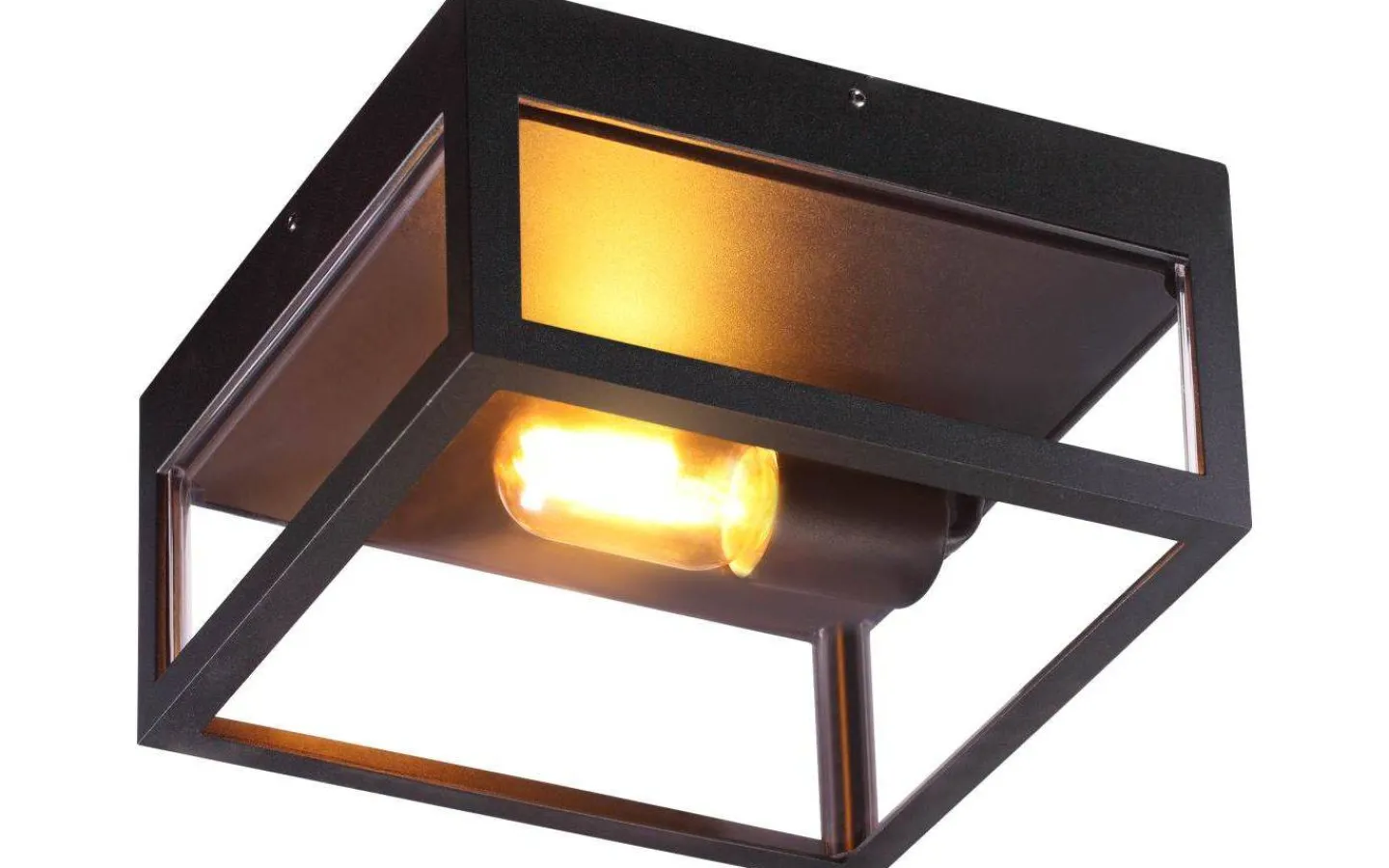 Arendal plafond för utomhusbruk i svart aluminium med lock i klar plast. Extern dimmer kan användas om dimbar ljuskälla används . Max 60W E27, ingår ej. Fast montering, IP44.