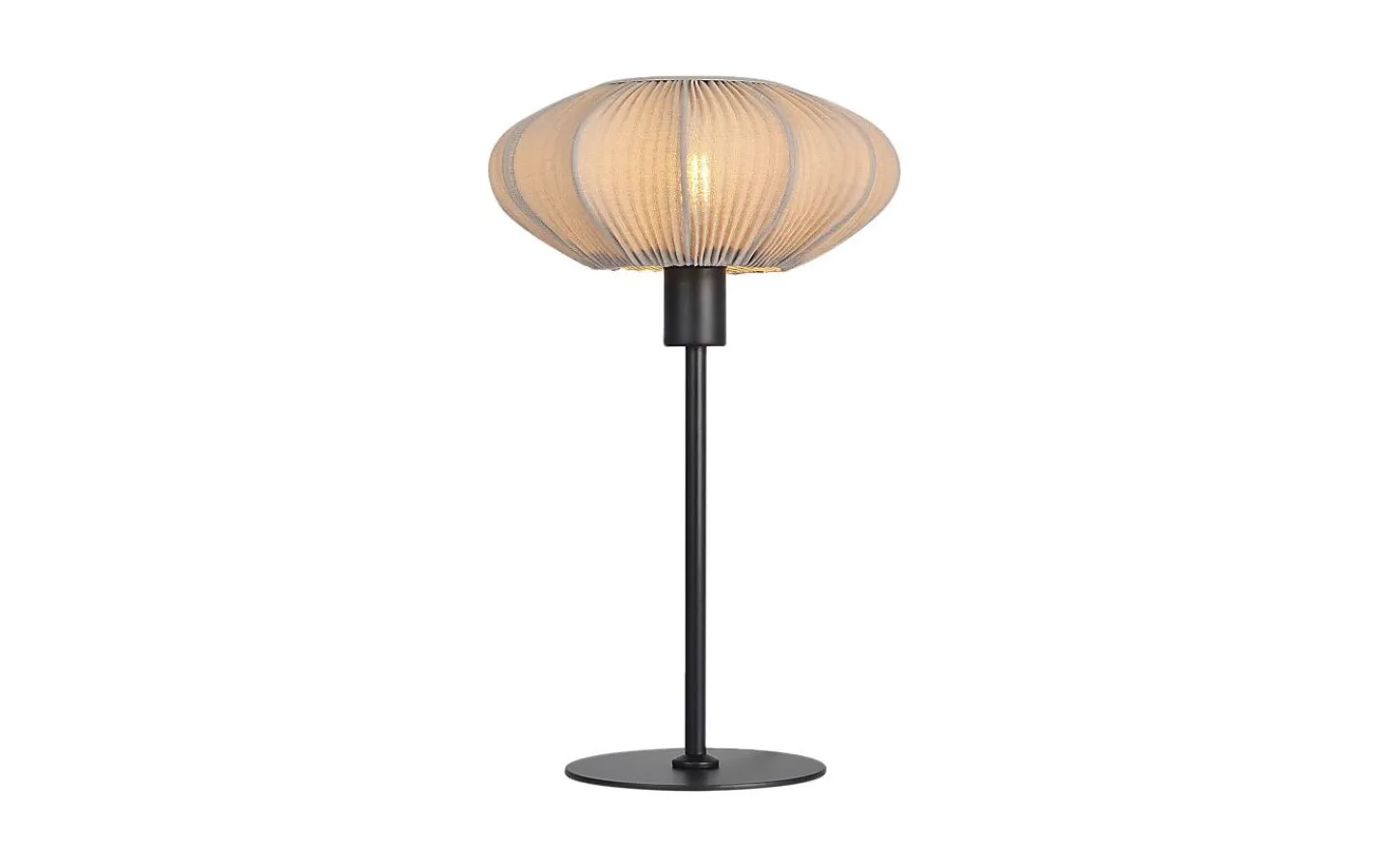 Mamsell bordslampa från Aneta har en stomme i metall och lampskärm i ett fin-plisserat stretchtyg som ger ett behagligt och något dämpat ljussken.