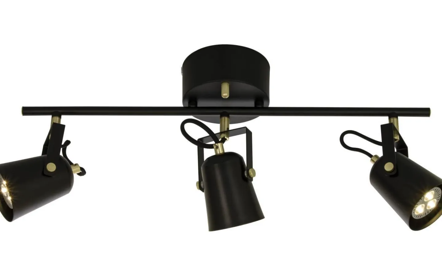 Aneta Metz Takspotlight 56cm 3L Svart/Matt Mässing* Avlånga Takspotlights|Takspot Med 3 Lampor