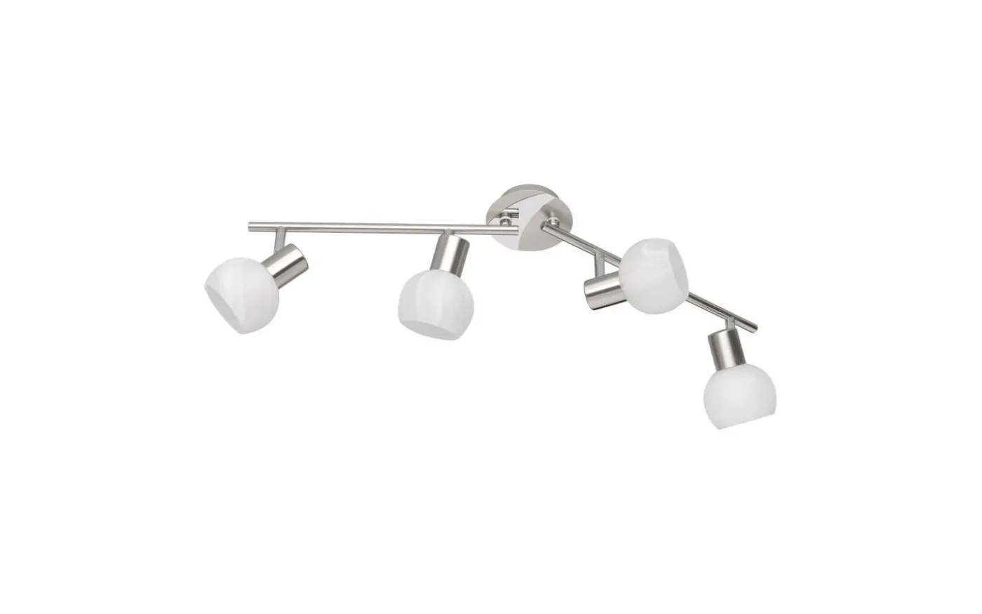 Spotlightserien ANTIBES imponerar i matt nickel med kromdetaljer och alabasterglas, vilket garanterar skuggfri och bländfri sikt. Du kan välja mellan en version med en eller flera ljuslågor. De enskilda spotlightsna kan justeras individuellt så att olika bostadsytor eller element kan framhävas genom att rikta ljuskäglan. Beroende på rummets storlek är tre-, fyra- eller femljusversioner lämpliga för att belysa hela bostadsutrymmet. Spotlighten med fyra ljuskällor är 69,5 cm bred och 20 cm hög. Alla vanliga ljuskällor med E14-sockel och max. 28 watt kan användas. Ljuskälla: exklusivt 4x E14 · max. 28W. Extra information: Takmontering, Lampa(or) ingår ej, Svängbar