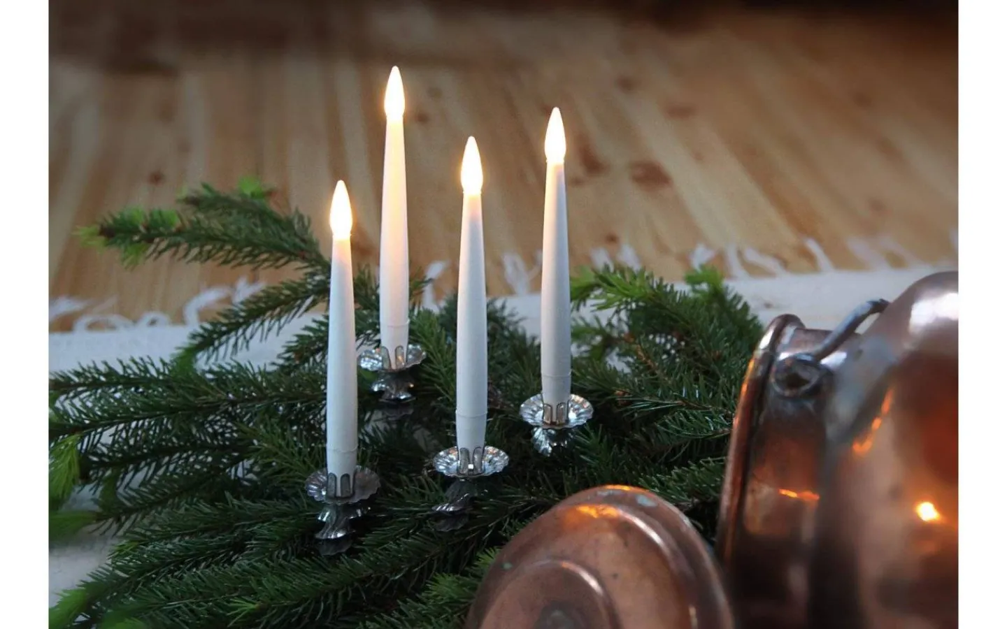 Paulina är ett 4-pack batteridrivna antikljus från Star Trading. Ljusen är väldigt verklighetstrogna och avger ett mysigt ljussken tack vare sin fina låga som skiftar i ljusstyrka för att ge ett flammande intryck.