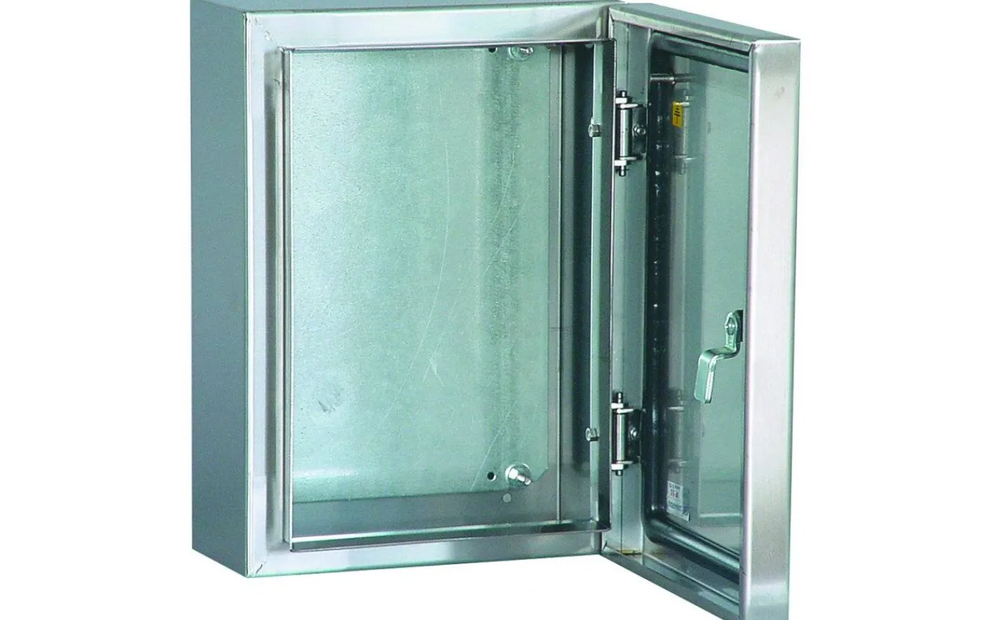 Tillverkat i rostfri stålplåt SIS 2333. Godstjocklek i skåp och dörr är 1,5 mm. Det är enkelt att flytta gångjärnen och ändra från höger- till vänsterhängning.