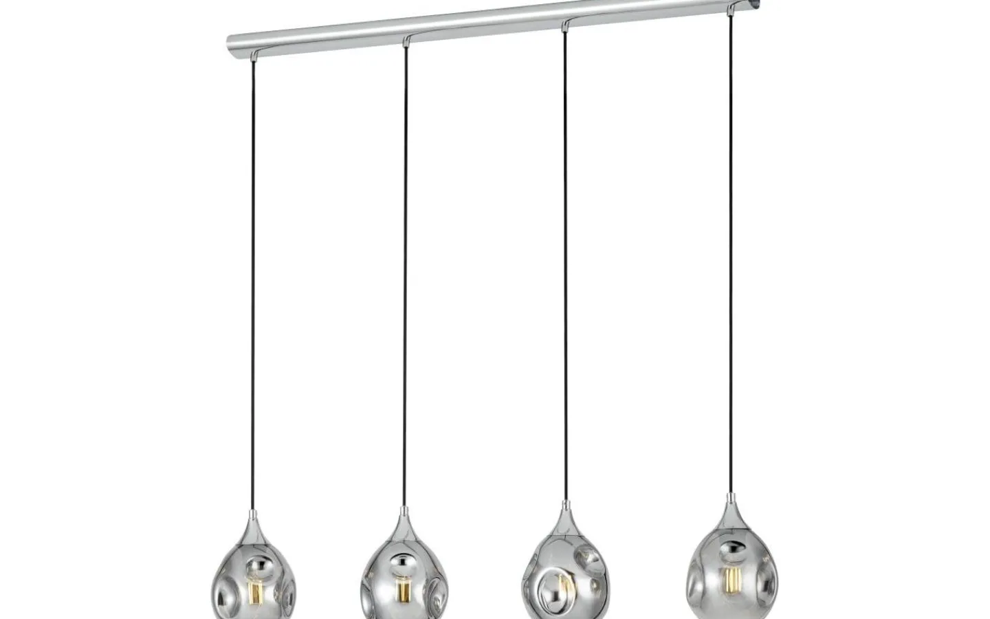 Denna pendelarmatur i krom från BREGALLA-serien är gjord av aluminium, svart förångat glas och svart textilkabel.