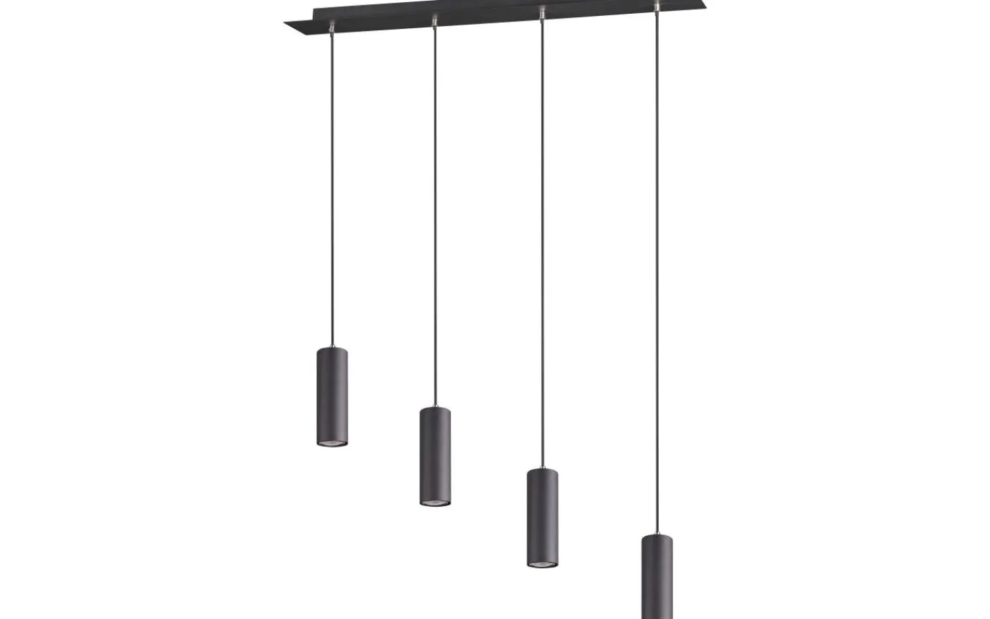 MARLEY-pendellampan är inte bara praktisk i form och funktion, utan framför allt en sak: helt enkelt vacker! Lampan har en diskret design och imponerar med sitt högkvalitativa hantverk. Oavsett om den är i köket eller i vardagsrummet: MARLEY med fyra lampor är mångsidig och kan enkelt kombineras med olika inredningsstilar. Pendellampan har en bredd på 75 cm och är särskilt effektiv när den monteras mitt i en matplats ovanför ett avlångt matbord. Vid installationen kan upphängningslängderna för de fyra pendellamporna justeras individuellt upp till en längd på 150 cm. Pendeln är designad i mattsvart och kan därför elegant komplettera och fullända moderna färgkoncept. För modern och pålitlig belysning rekommenderas användning av en LED-lampa. Den erbjuder hög ljuskvalitet, är mångsidig och övertygar med jämn belysning. Dess långa livslängd och låga värmeutveckling gör den till det perfekta valet för en mängd olika användningsområden. Ljuskälla: exklusiv 4x GU10 · max. 35W. Extra information: Justerbar i höjd, Takmontering, IP20, Lampa(or) ingår ej