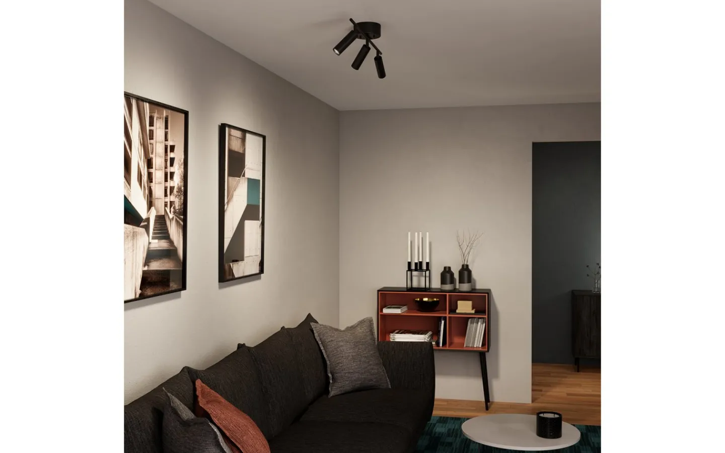 Denna modell är avlång med 3st riktbara lamphuvud och är gjord i metall med en mattsvart finish.