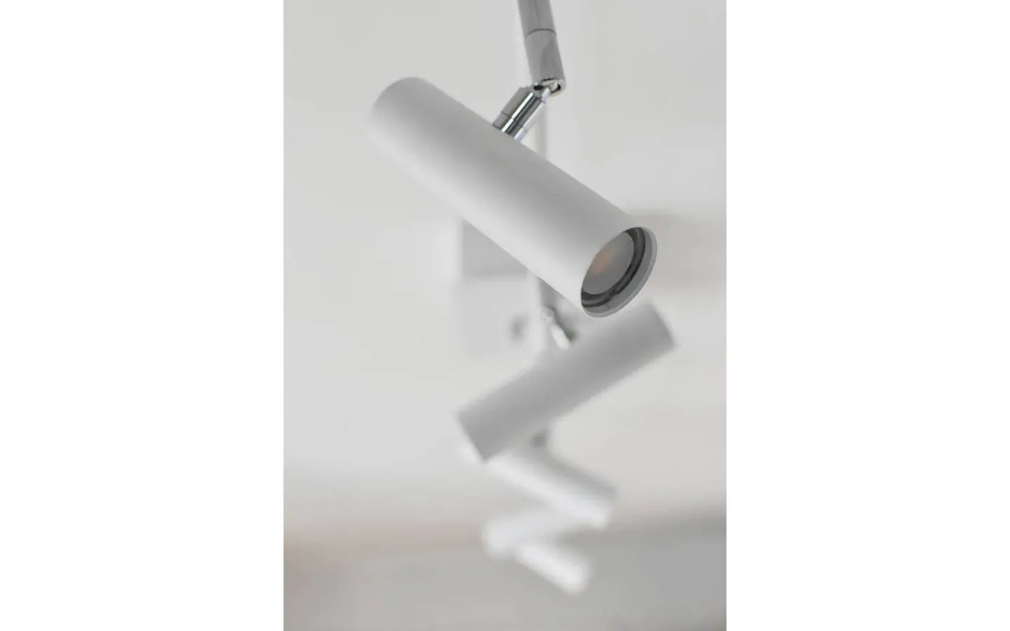 Artic spotlight i vitlackerad metall med detaljer i krom. 5 ställbara spothuvud i rad med LED -ljuskälla som ger behagligt varmt vitt ljus. Kan dimmras. Bygelupphäng med kopplingsplint.