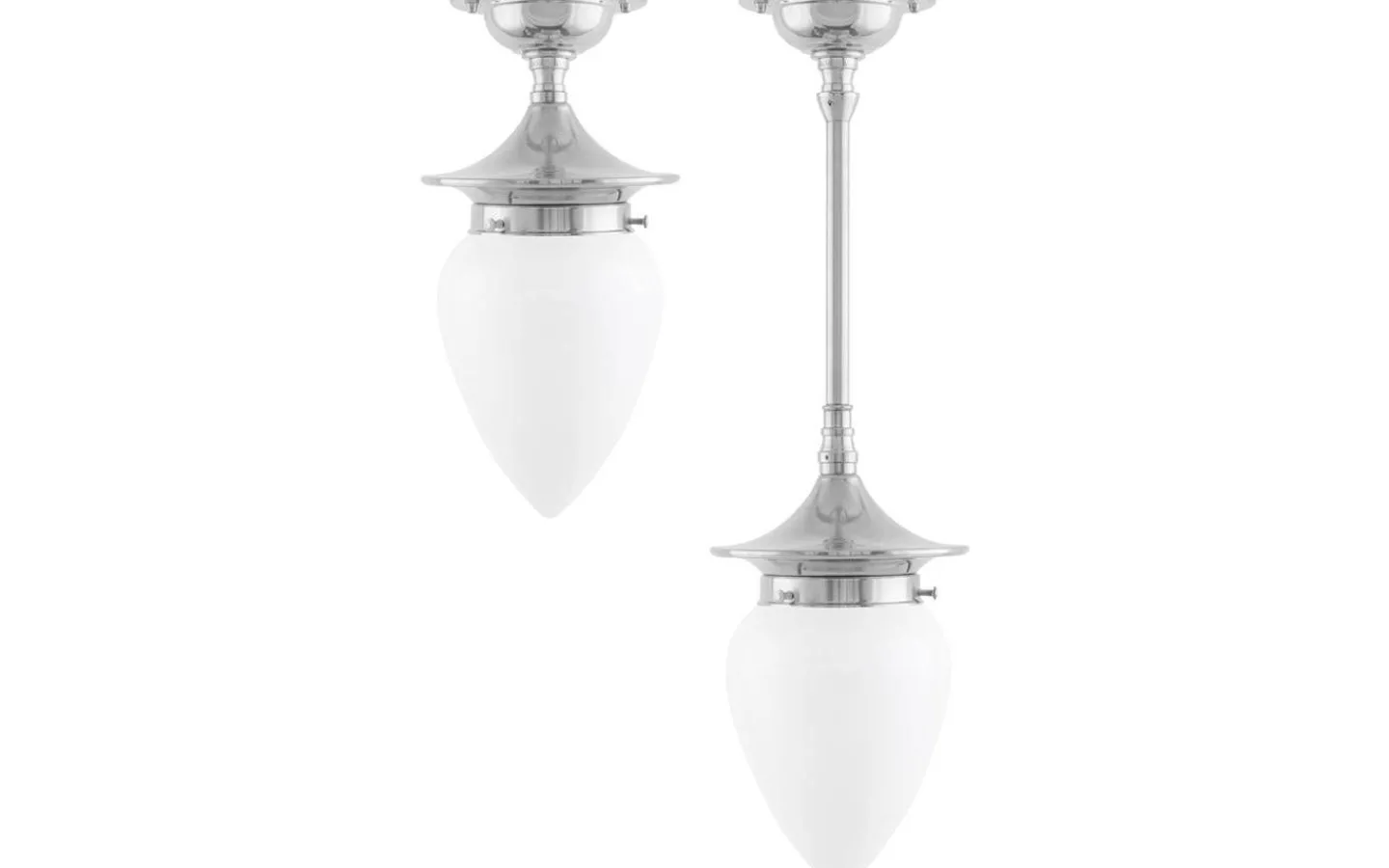 Dahlberglamporna har en stor mer påkostad skärmhållare i jugendstil som var vanlig kring sekelskiftet 1900. Genom val av rör i olika längder går hänghöjden att anpassa efter rummets förutsättningar. Kan förlängas upp till 100cm med extra rör. Rören går att kombinera med varandra för att uppnå önskad hänghöjd. Skuvas mot taket (c/c 60 mm). Önskar man gå in med kuloledning från sidan av armaturen kompletteras med en distansplatta. Önskar man hänga den på en takkrok kompletteras istället med en takkroksbygel (3726J110) och ett taksladdställ (3742).