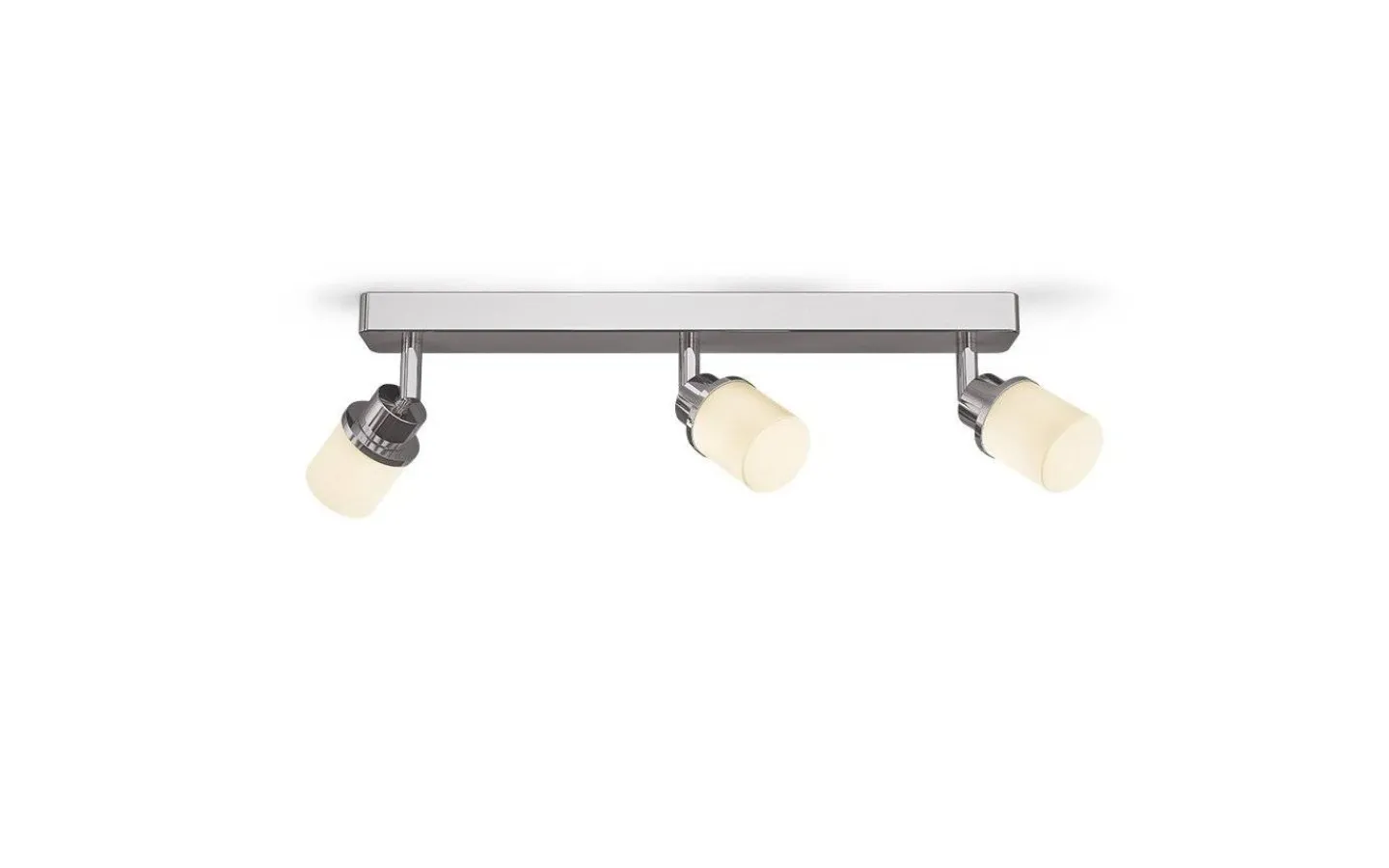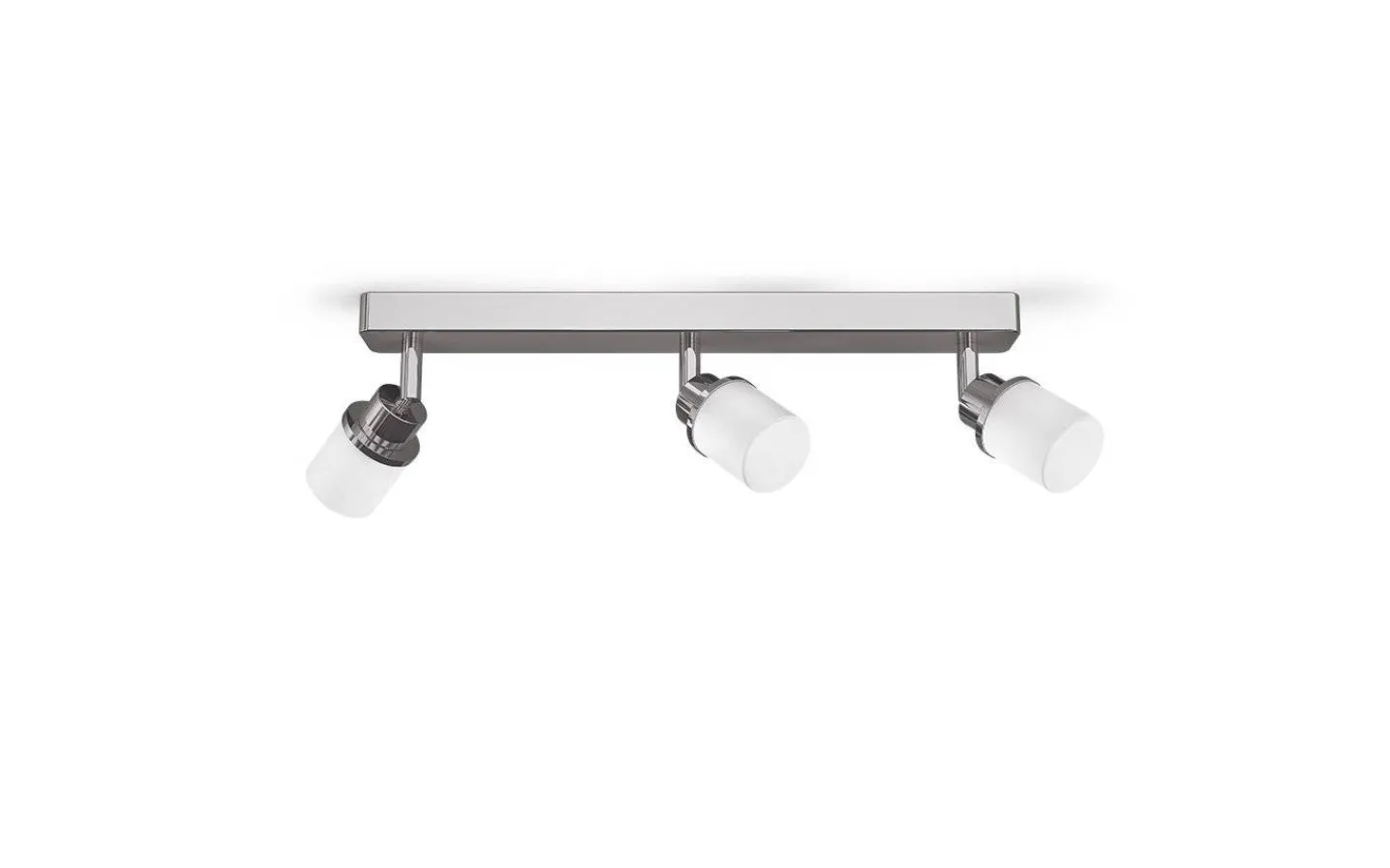 Stilren armatur som både kan sättas på väggen eller i taket. Linn har en kromad bas med opalfärgade glas och är anpassad för montering i badrum.