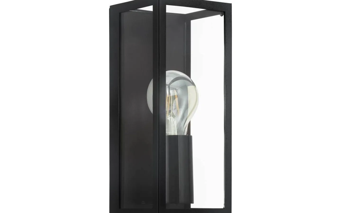 AMEZOLA vägglampa har en svart metallram och klara glaspaneler med en synlig glödlampsdesign. Vägglampan är den perfekta pricken över i:et för moderna interiörer och med IP44-skydd mot sprutvatten erbjuder den en distinkt belysningslösning för badrummet.
