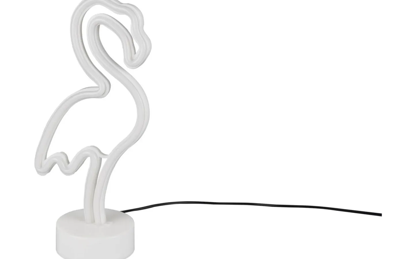 FLAMINGO LED-bordslampa är en riktig dekorativ höjdpunkt och får dig att komma på gott humör samtidigt. Tack vare sin coola design är lampan inte bara idealisk för vardagsrummet, utan även som dekoration i barer, sovrum eller kontor. Den 33 cm höga och 15 cm breda lampan har en på/av-knapp och styrs via en USB-anslutningskabel. Tack vare den vita plastdesignen reflekteras ljuset optimalt och armaturen smälter enkelt in i alla inredningsstilar. Dessutom har armaturerna modern LED-teknik, vilket står för hög ljuskvalitet. LED-ljuskällor kännetecknas av lång livslängd och låg värmeutveckling. Ljuskälla: inklusive 1x SMD, 1,5W · 1x 10lm,. Extra information: IP20, Ej dimbar, Funktion 116, Strömbrytare, USB-anslutning