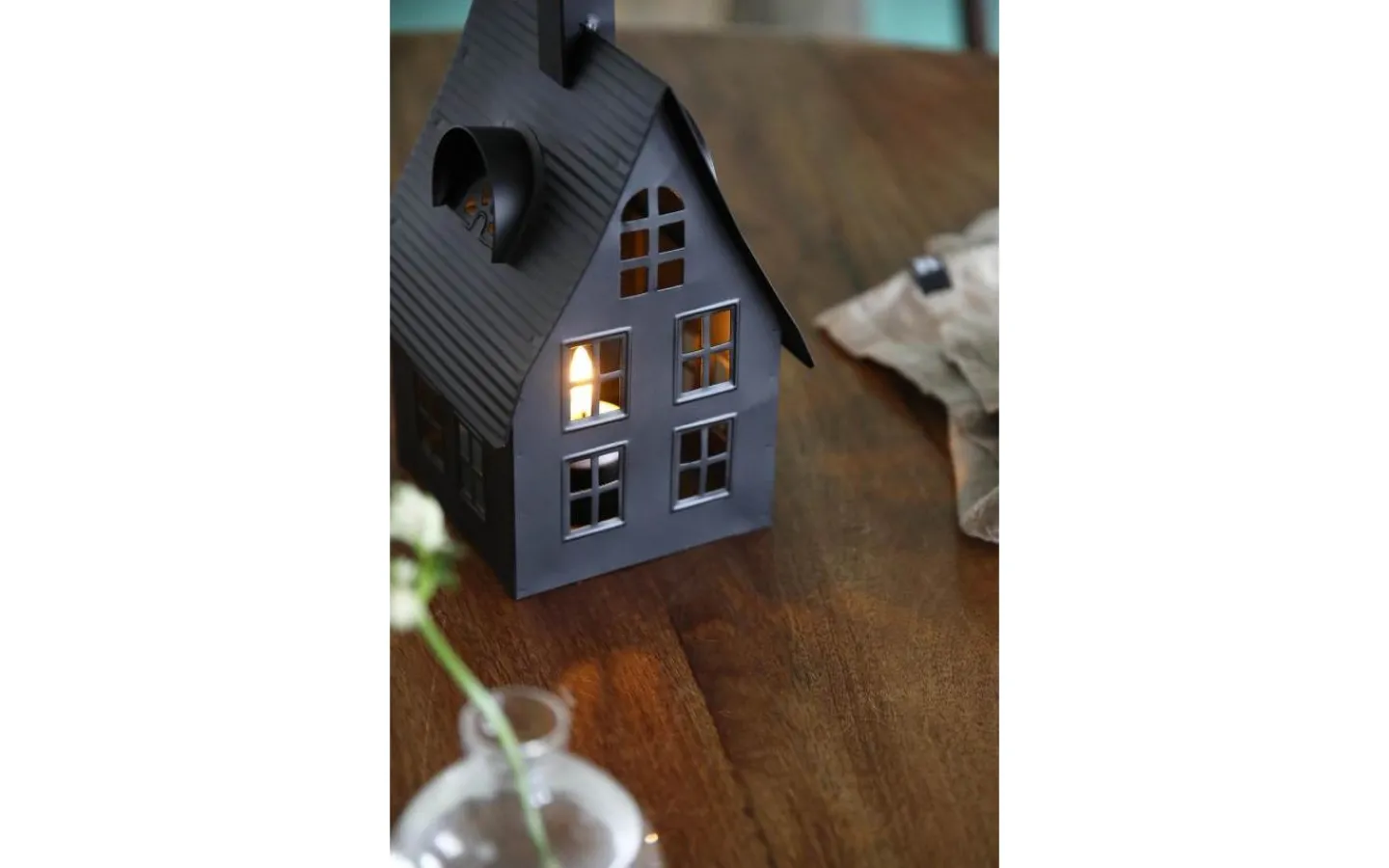 Luton bordsdekoration från Markslöjd. Bordsdekoration i form av ett hus i metall. Inkluderat LED värmeljus med On/Off brytare och timer. Timer 8h on och 16h off. Drivs med 1xCR2032 batteri. Batteri ingår ej.