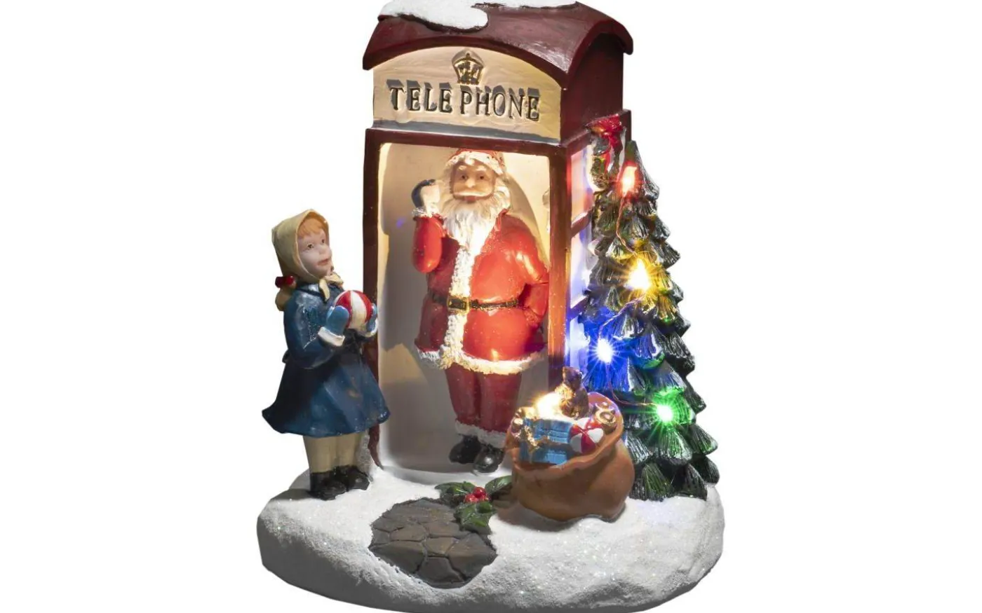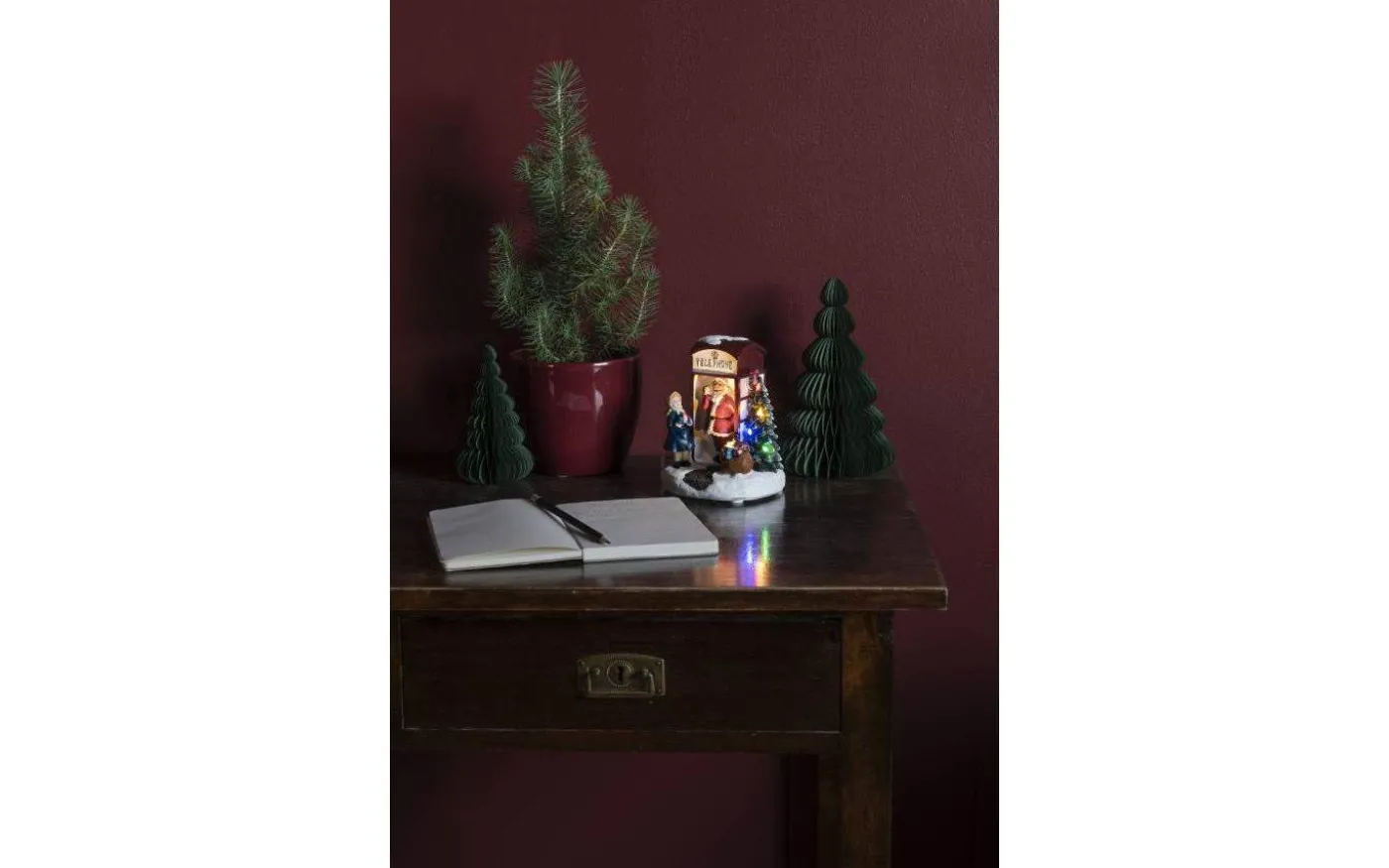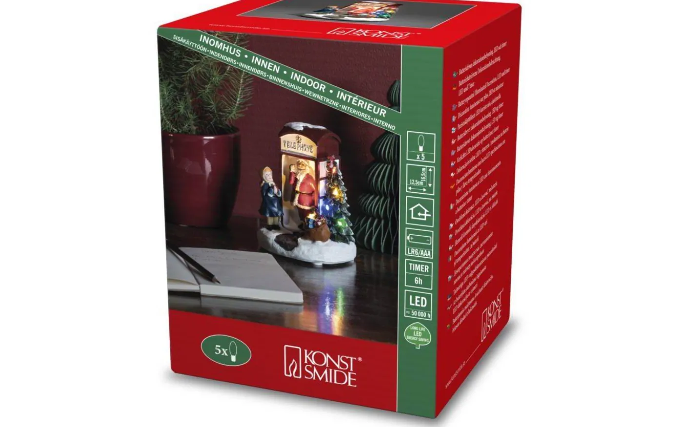 Batteridriven juldekoration från Konstsmide i form av en telefonkiosk med en tomte.