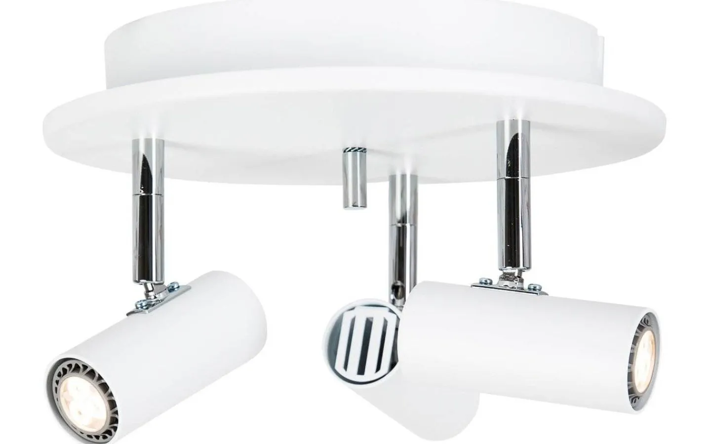 Cato takspotlight passar perfekt i rum och utrymmen där du vill belysa flera olika delar av rummet samtidigt då du enkelt riktar de 3 lamphuvudena i önskad riktning. Taklampan är tillverkad av metall med en vit finish och detaljer i krom.