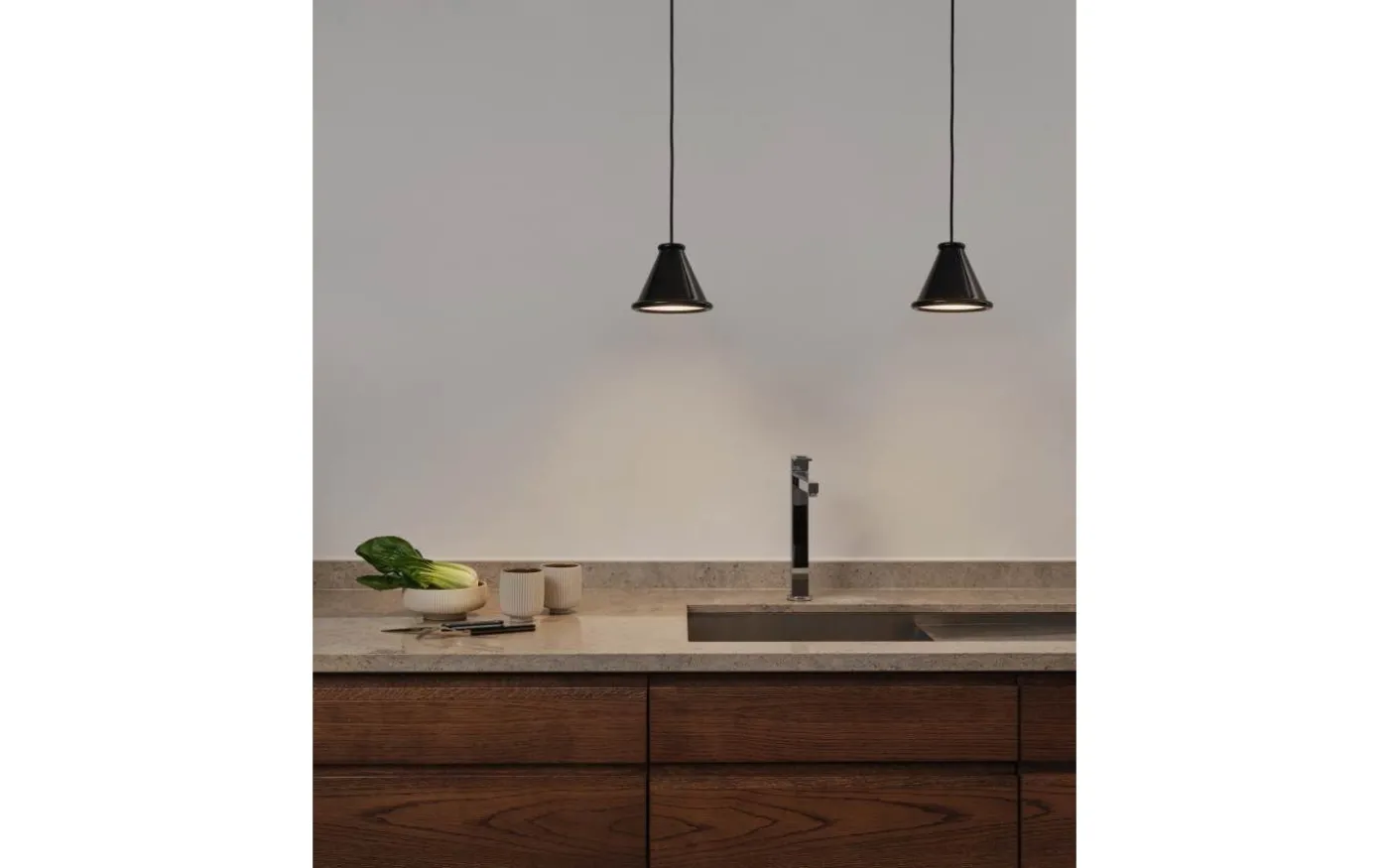 Mötet mellan aluminiumringarna, den trycksvarvade konen och det opala bländskyddet ger taklampan en helhet och en känsla av tyngd. Fönsterlampan har en dold, dimbar LED-ljuskälla som avger ett fint, jämnt och bländfritt ljussken. Fönsterlampan skruvas upp och installeras med fast installation.