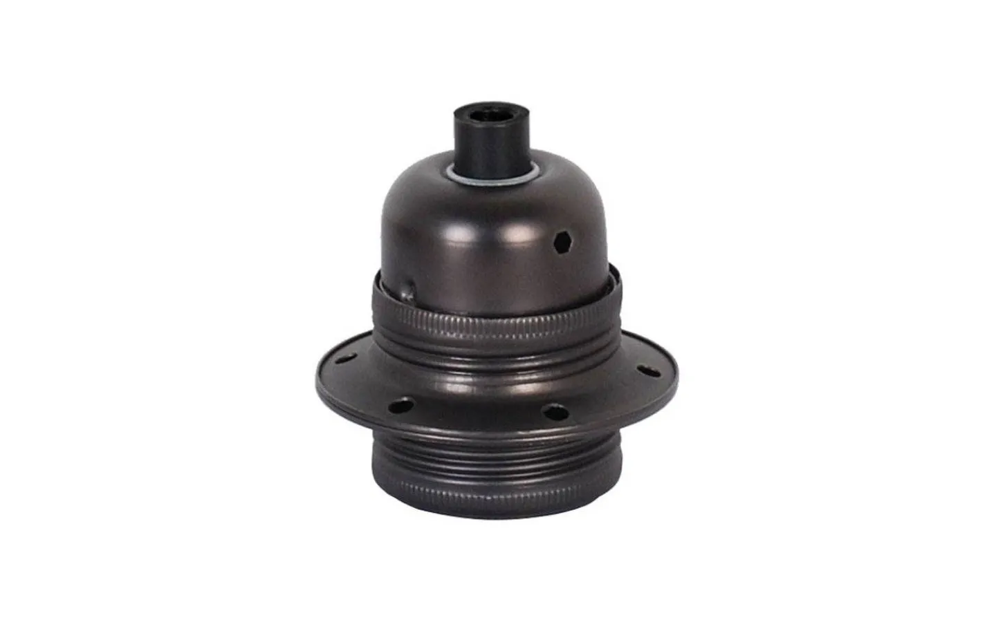 Ojordad lamphållare i metall med E27 sockel. Gängad med skärmring.