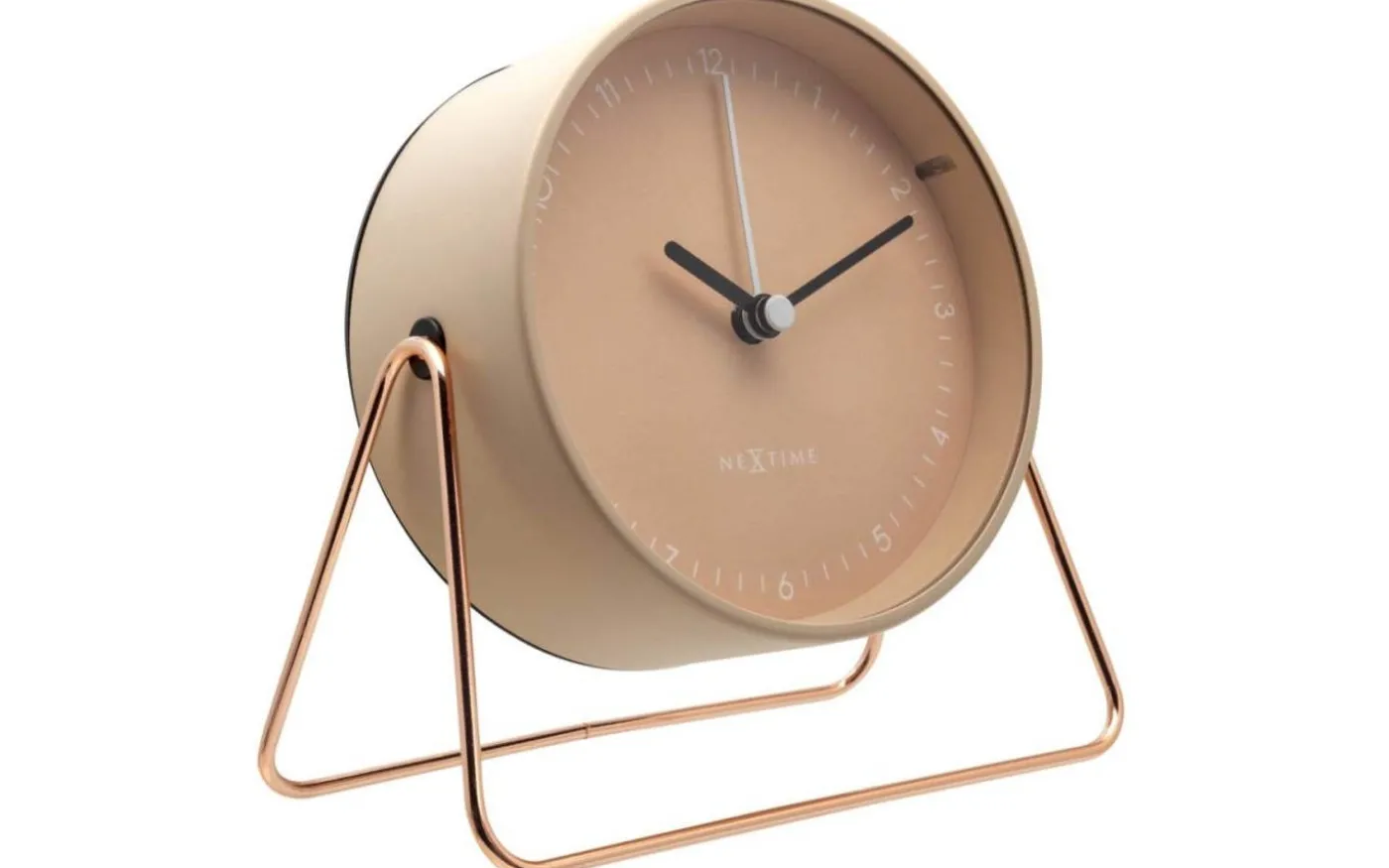 Tystgående bordsklocka. Mått: L14 cm / D7 cm / H13 cm. Material: Stål. Färg: Rosa. Batteri: 1 AA (ingår inte)