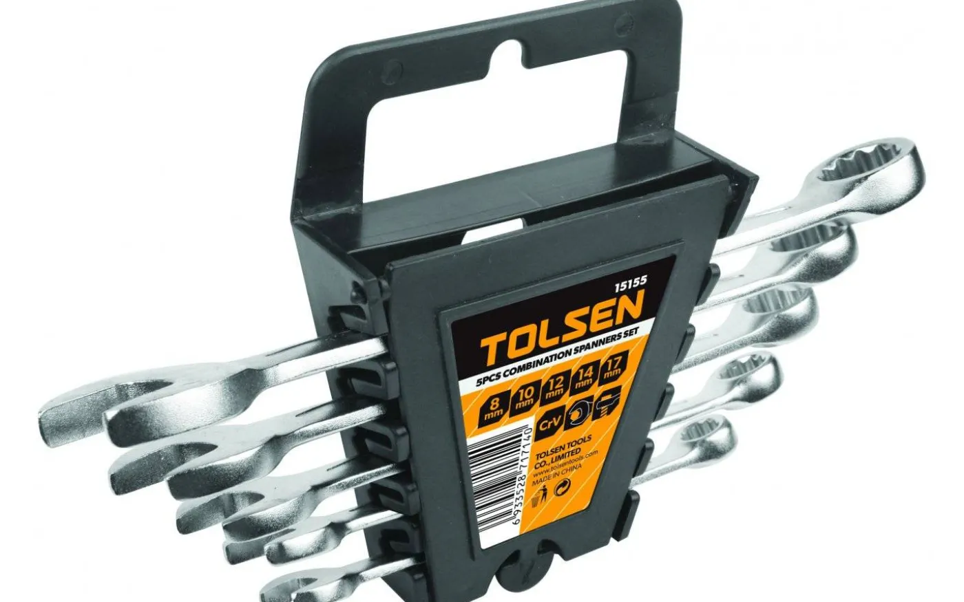 Blocknyckelsats som innehåller blocknycklar i storlekarna 8/10/12/14/17 mm. Nycklarnas ringar har utrustats med tolvkantsfäste och 15° lutning, något som ger bättre åtkomst och fäste. Levereras med hållare i plast. Tillverkade i kromvanadiumstål.