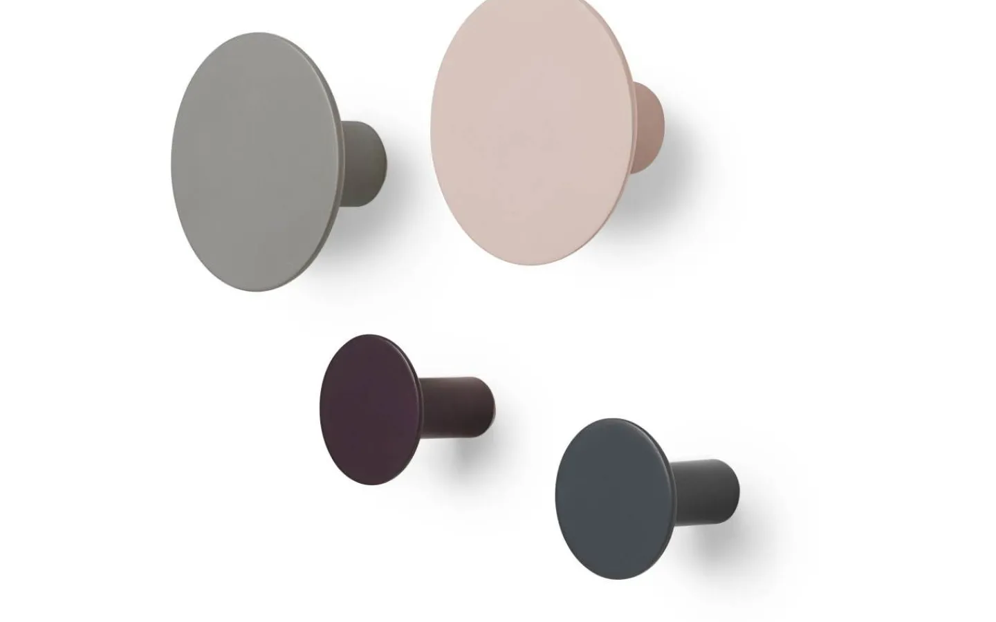 Ponto väggkrokar från Blomus är ett set om 4st väggkrokar och kommer i två olika storlekar, 2x 8,5cm och 2x 5cm, samtliga har ett djup på 4,5cm. Väggkrokarna är tillverkade i polystone och kommer i fyra olika färger, Rose Dust, Elephant Skin, Winetasting och Gunmetal.