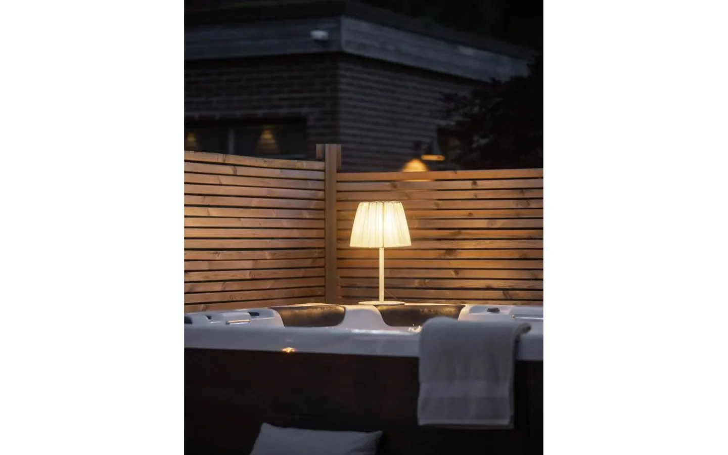 Agnar bordslampa från välkända PR Home är en bordslampa för utomhusbruk. Lampskärmen är tillverkad i ett tyg av 100% Akryl Dralon som tål att vistas utomhus i alla väder. Tyget har en melange effekt och är oeko-tex 100 certifierat med hög ljushärdighet (5-7). Vatten- och smutsavvisande teflonbehandling. Lampskärmens ställning är galvaniserad för att inte rosta.