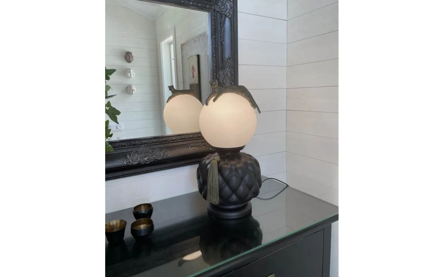 Upplev den förtrollande skönheten hos Viva La Diva, en bordslampa skapad av designern Lisa Bengtsson. Med en lampfot i elegant matt svart keramik, kombinerad med det opalvita glaset som kröns av en leopard i antik brons, är denna lampa ett mästerverk. Den gröna tofsen lägger till en lekfull touch, vilket gör varje rum levande. Med sina mått på 45 cm i höjd och 23 cm i bredd blir Viva La Diva en imponerande inredningsdetalj. Den svarta kabeln, försedd med en on/off-knapp och en längd på 170 cm, ger dig friheten att placera denna fantastiska lampa var som helst i ditt hem. Ge ditt utrymme en touch av glamour och personlighet med Viva La Diva.